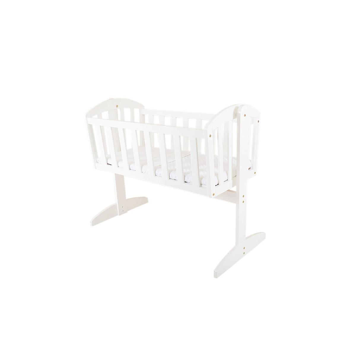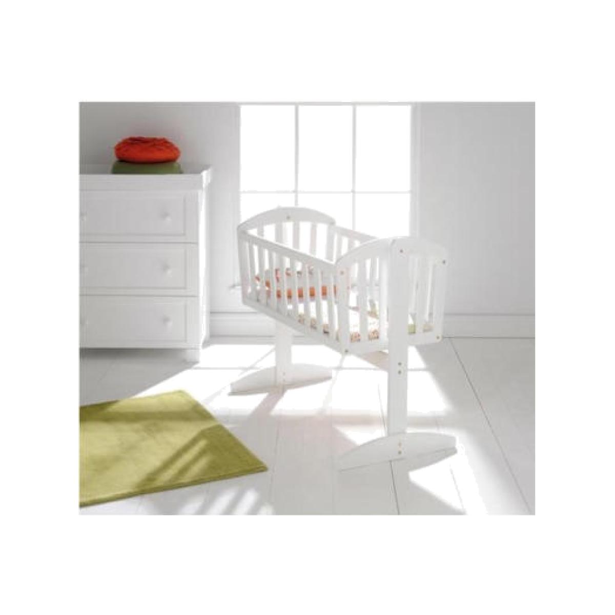 Crib Dimensions H84 x W53 x D106 cm. The Vienna Swinging Crib makes a beautiful first bed for your newborn and allows you to rock them gently to sleep. It features a simple locking device to safely secure it in a fixed position. The simple traditional style and white finish will complement your nursery and bedding choices perfectly. This crib has been carefully designed thoroughly tested and solidly made with sustainably-sourced wood. Features. Suitable from birth. Features a simple locking device to safely secure it in a fixed position. Takes a mattress size 89 x 39cm. DELIVERY RESTRICTIONS. Please note we are only able to ship East Coast to UK Mainland postcodes. We are unable to ship to Ireland Northern Ireland Scottish Highland or the Channel Islands...
