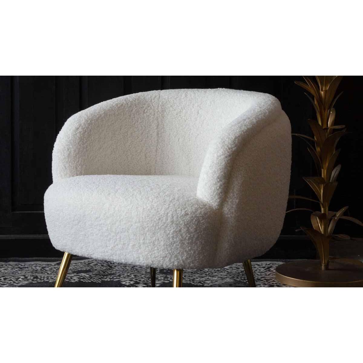 About The White Teddy Armchair With Gold Legs A hug in a chair! The White Teddy Armchair With Gold Legs is a brilliant addition to your furniture that’ll create a warm homey feel wherever you place it. Featuring an utterly cosy fluffy snow-white chair made from polyester with high shine gold legs, this soft armchair showcases a one of a kind charm with its unique snuggly design. Perfect for when the days get colder, you’ll be as snug as a bug sat on this teddy bear chair, so what’s not to love?! The White Teddy Armchair With Gold Legs measures 74cm in height, 72cm in width & 72cm in depth. Why We Think You’ll Love The White Fluffy Armchair This white armchair is perfect for cuddling up and reading your favourite book, we can guarantee you won’t want to give up your spot! The sleek gold legs create a put-together sophisticated look, that juxtaposes so brilliantly with the laid back snuggly effect of this fluffy chair. An utter statement piece of bedroom furniture, this snow-white teddy chair will create a winter wonderland vibe in your home and is the perfect piece to welcome in the wintery season. Where To Style The White Cosy Armchair The snuggly chair is perfect for creating a comfy and intimate interior scheme. The ideal piece for introducing new textures into your space, the fluffy material on this cosy chair will inject a warm and oh-so inviting feel into your home. Style this teddy bear armchair in your living room, bedroom or even a quiet corner for an utter relaxing dreamlike vibe.