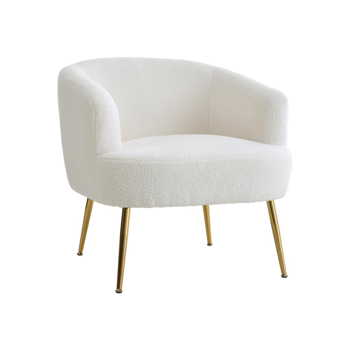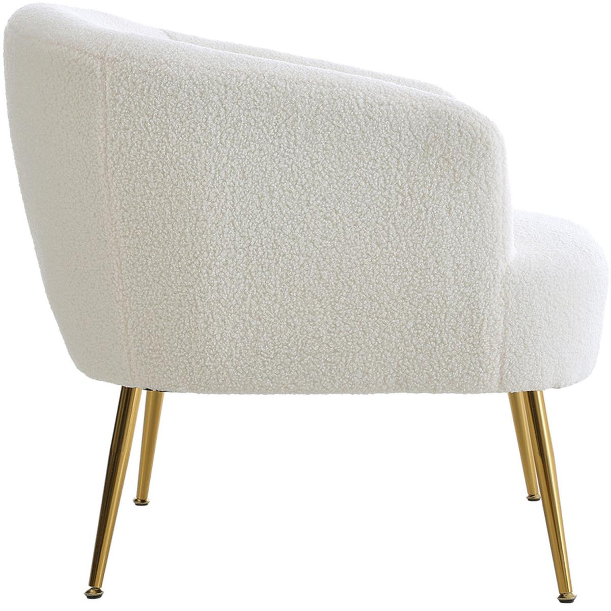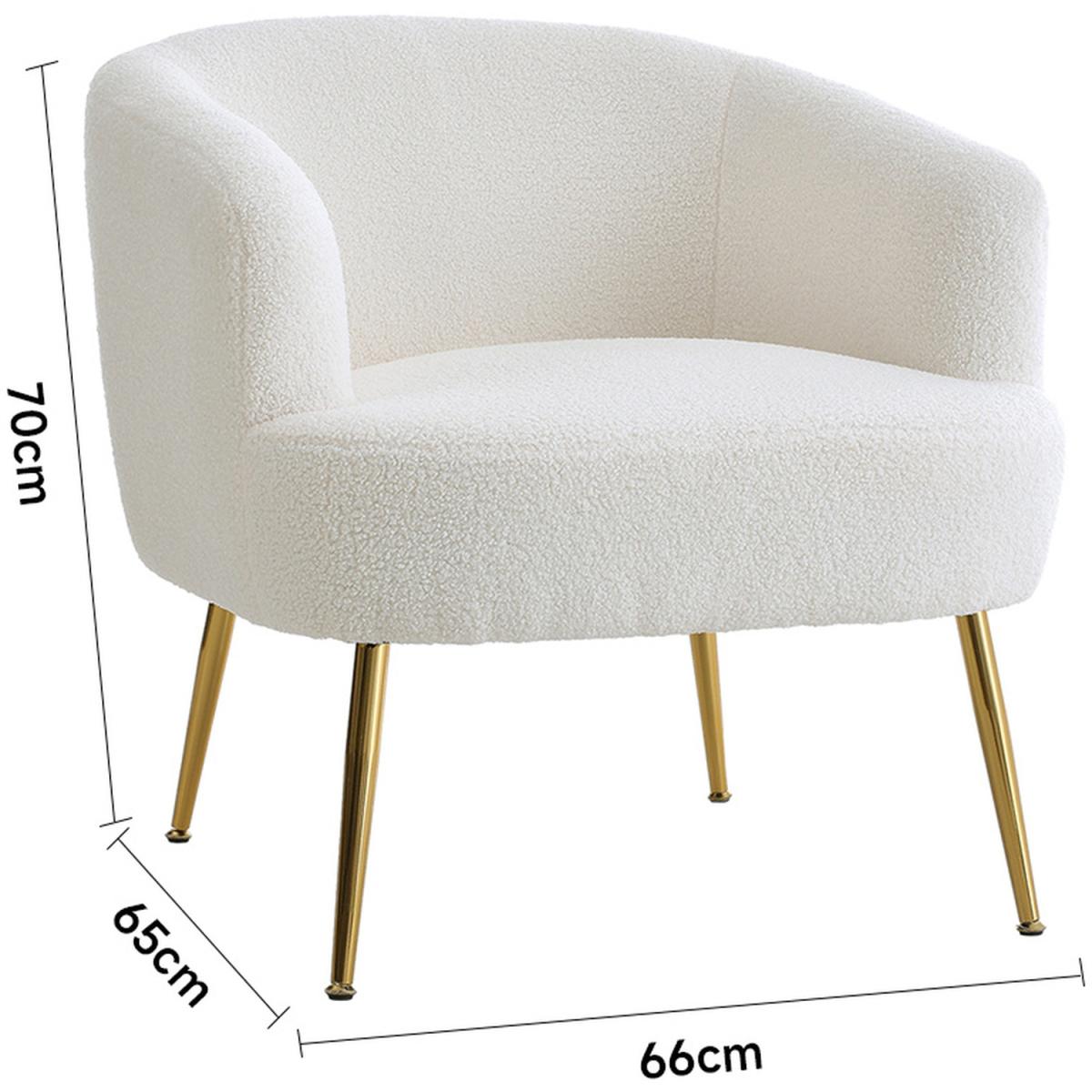 White Teddy Fabric Armchair with Metal Legs - White
