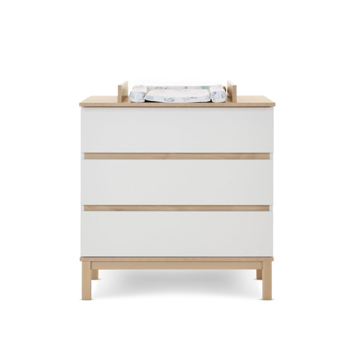 The Obaby Astrid Collection offers a sleek and modern changing unit that provides both practicality and style, making it the perfect addition to your dream nursery. Inspired by Scandinavian design, the Astrid features clean lines and a two-tone colorway, giving it a contemporary look and feel. The three large drawers, fronted by a chic no-handle design, provide plenty of storage for your little one's belongings, while the clever positioning of the changing top ensures plenty of precious one-to-one time with your baby. Once you no longer need to use the changer, the removable top ensures you have a stylish chest of drawers that will complement any room of the house for years to come.