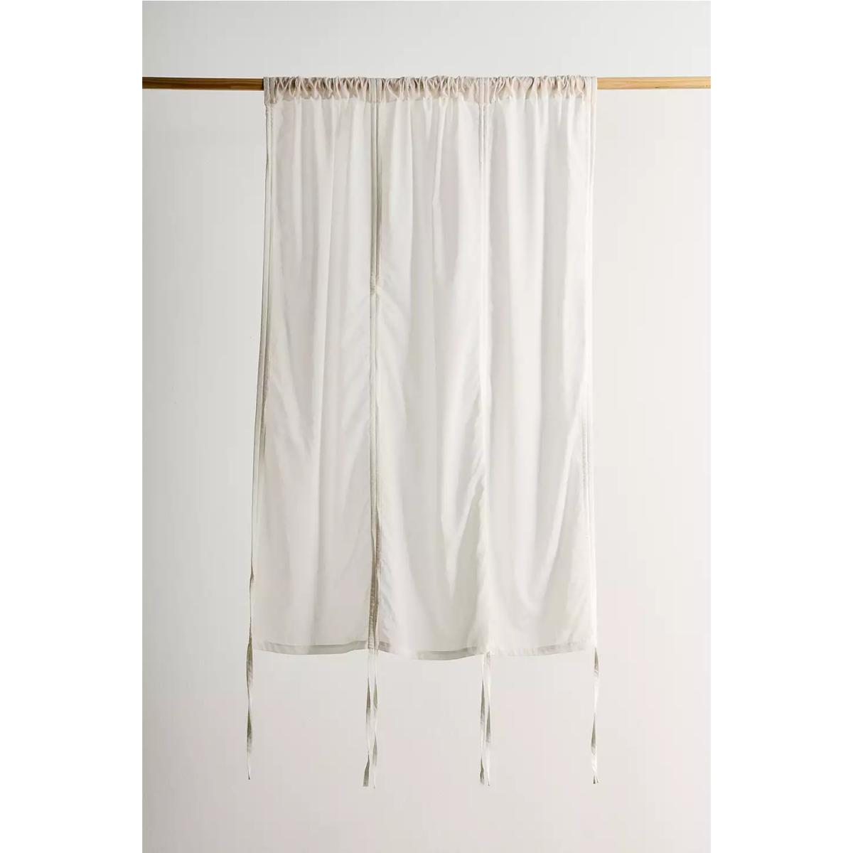 Elegant white curtain crafted from sheer cotton that gently lets the natural light through. Complete with cinchable cords. Features a rod pocket for easy hanging and a flowing design that will elevate any space. **Content + Care** \- 100% Cotton \- Machine wash **Size** \- 152cm x 132cm