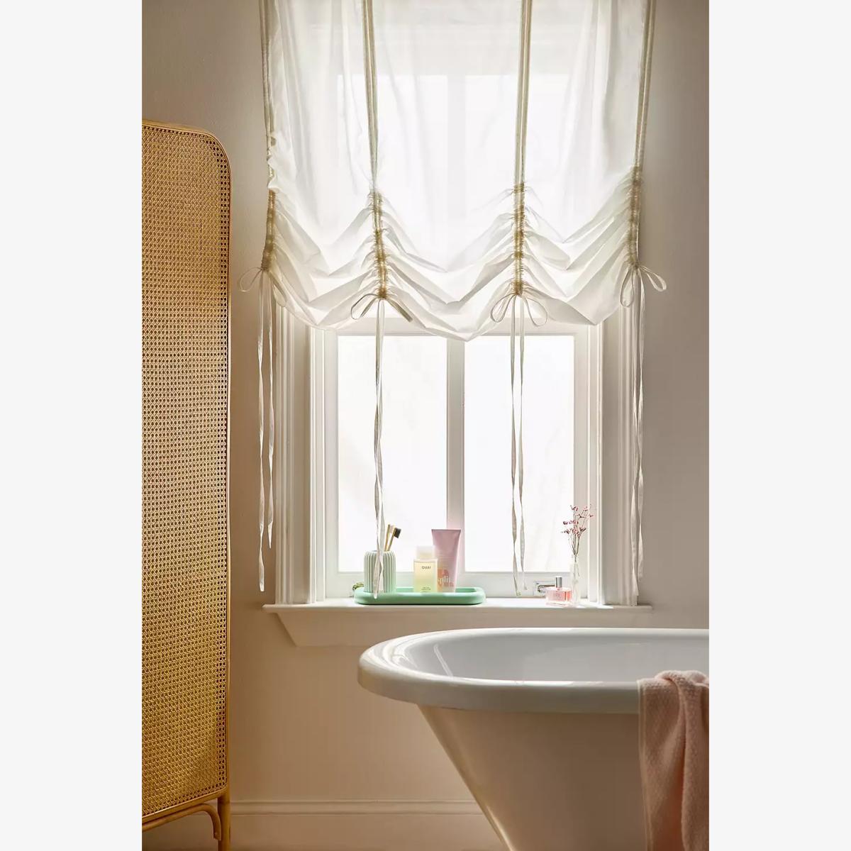I love this tying bow curtain for its classic yet playful look, making it a versatile addition to a variety of interiors. It works particularly well in traditional or cottage-style spaces, but it can also add a charming touch to more modern, minimal rooms when paired with neutral tones. Practical styling tips include using it in bedrooms or living rooms where you want to soften the window area without blocking too much light. The tied design adds a bit of texture and visual interest, so keep the rest of your decor sleek and simple to let the curtain be a focal point. It’s a great choice if you’re after a cosy, inviting vibe with a touch of elegance.