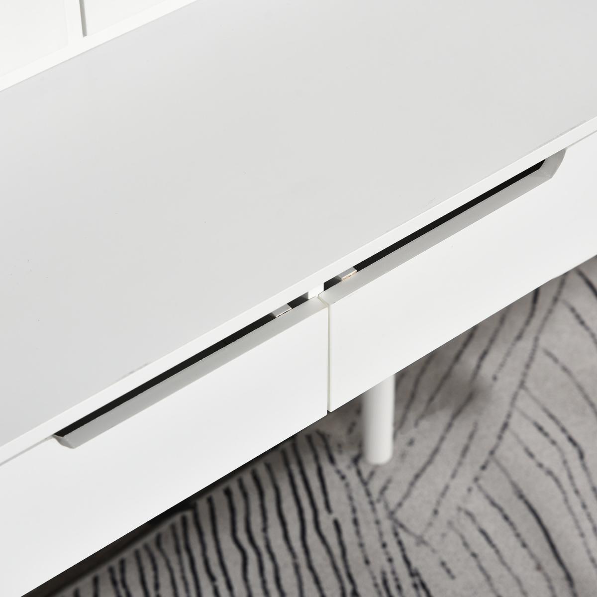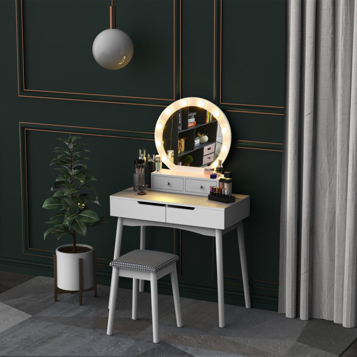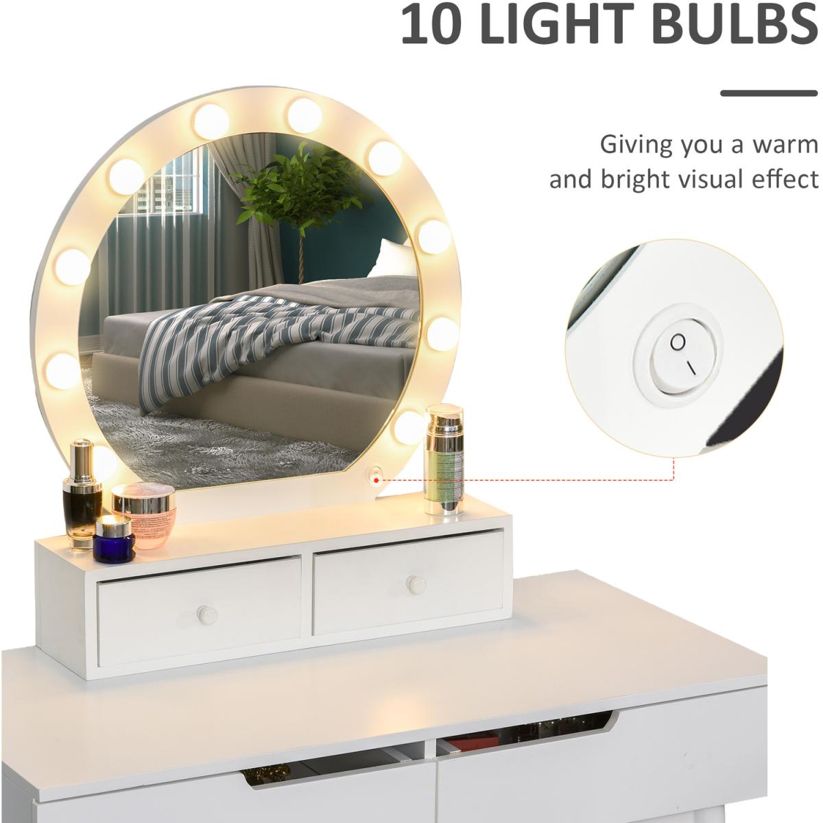 This HOMCOM Dressing table set is a great addition to any bedroom, comes with 4 drawers to keep jewellery, cosmetics or other items in order. A large mirror with LED lights makes your makeup more convenient, making it an ideal place for you to get ready. The set is completed with a matching comfortable stool, this elegant and concise styled set is perfect for any bedroom and decor.