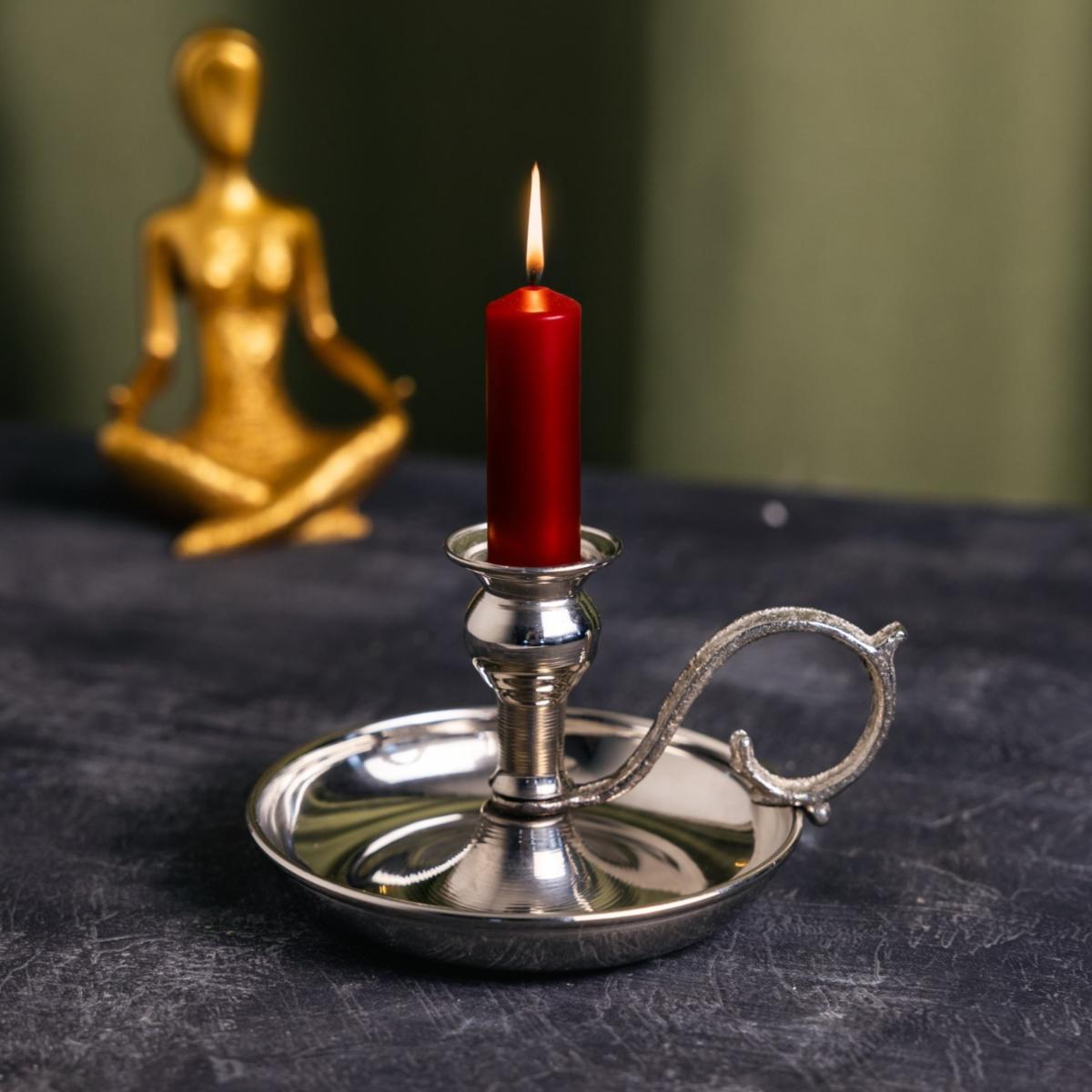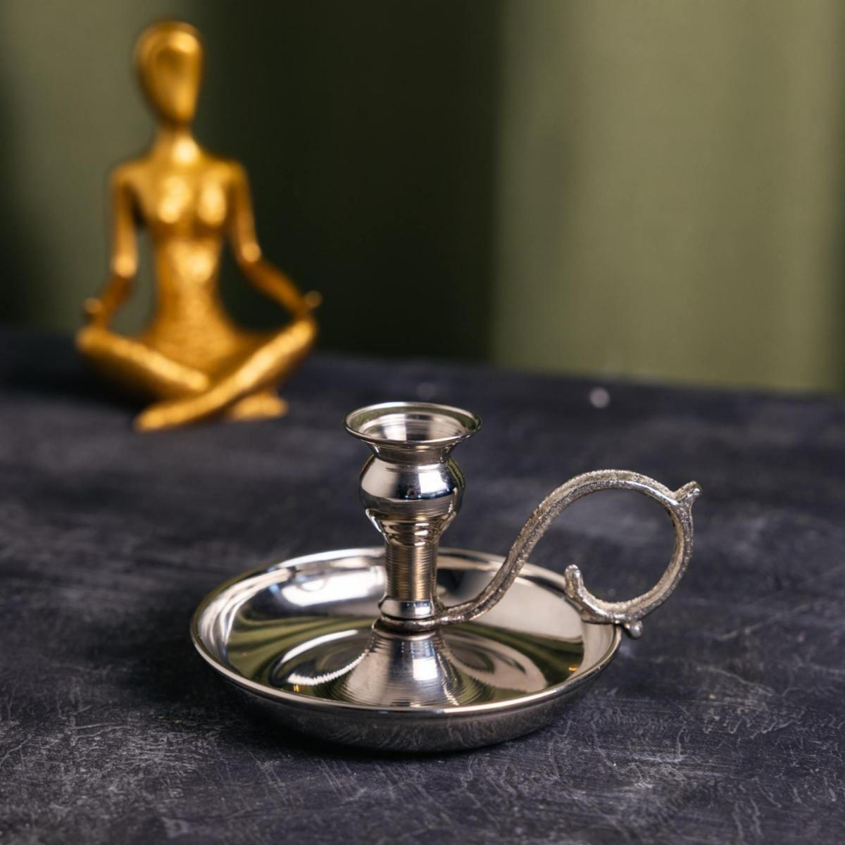 Bring a timeless elegance to your space with this vintage-style polished copper candle holder, enhanced with a beautifully crafted silver-toned handle. The smooth copper finish contrasts perfectly with the intricate silver handle, creating a stunning accent piece for any room. Ideal for creating a cozy ambiance during dinner parties or quiet evenings, this candle holder pairs functionality with classic design, making it a charming addition to your décor.
