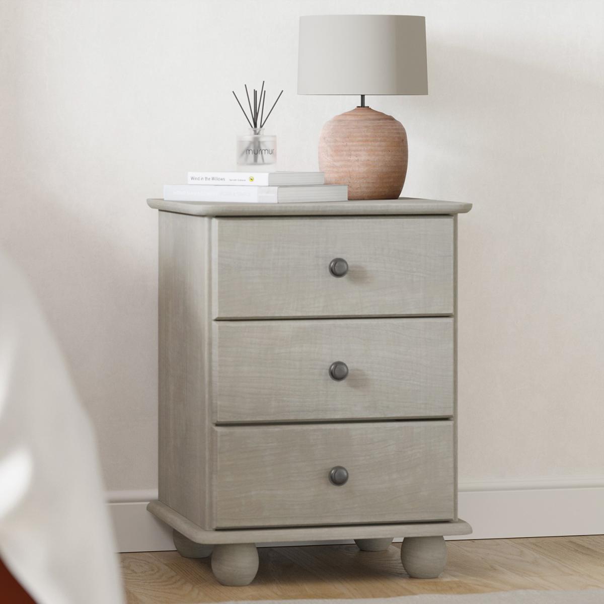 White Wash Pine 3 Drawer Bedside Table - Hampton