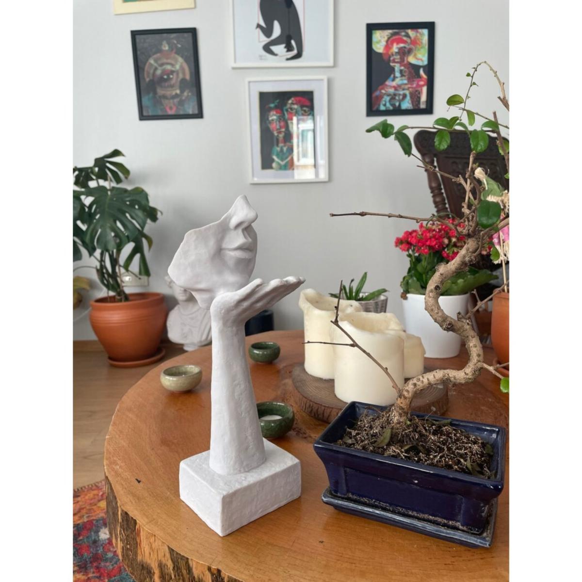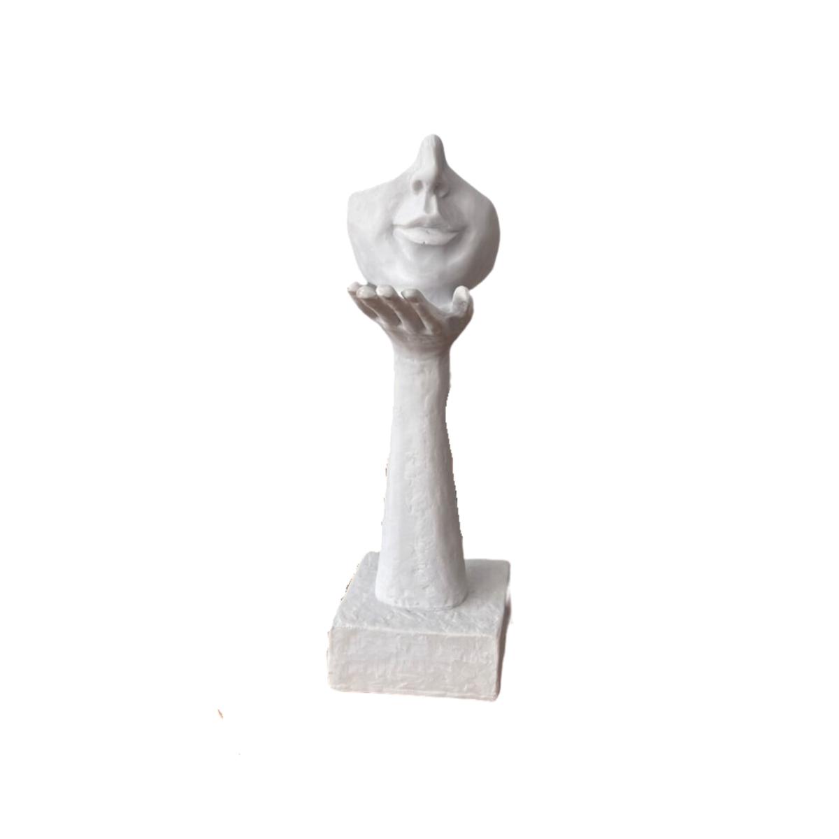 Make a bold statement with this striking 12-inch Mask Sculpture Statue. An ideal housewarming gift or a stunning addition to your decor, this statue features a creative abstract design that is sure to impress. The intricate details of the statue's face and hand statues add a touch of sophistication, making it a standout piece in any room. Whether placed on a home office desk or displayed as a focal point in your living space, this sculpture exudes elegance and charm. The creative abstract decor of this statue adds a modern and artistic flair to your home or office. Enhance your surroundings with this beautifully crafted sculpture and enjoy its unique charm and beauty.