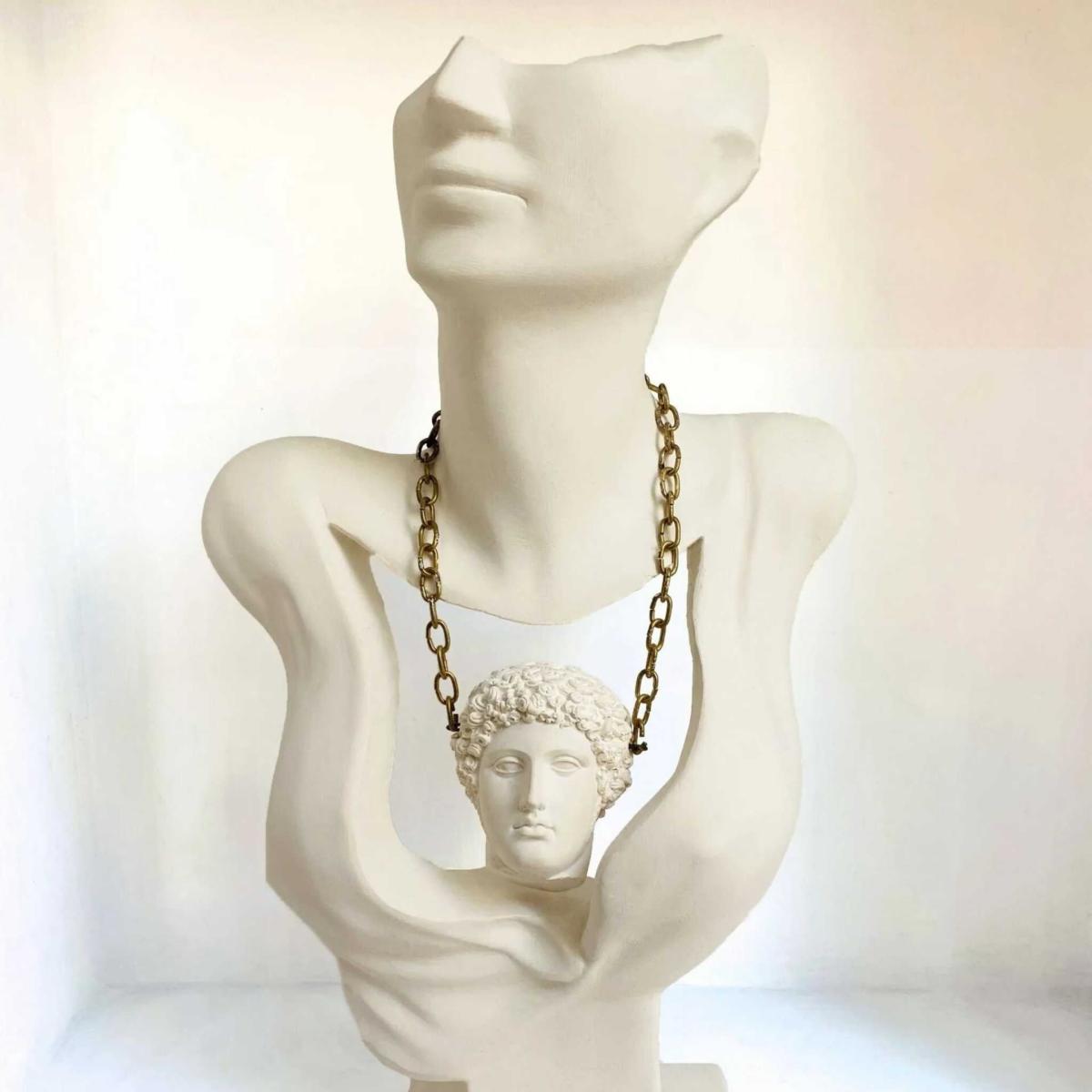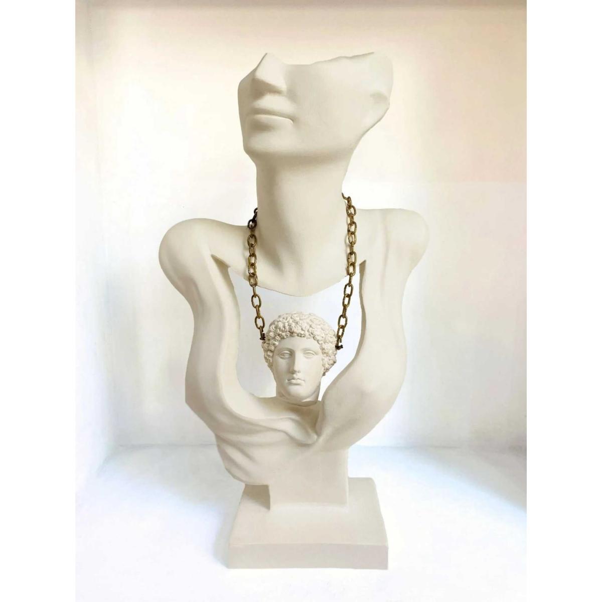 Immerse your space in the timeless beauty of our "Woman & Hermes" sculpture, a harmonious masterpiece standing elegantly at 47 x 27 cm. This captivating piece celebrates the union of feminine grace and divine messenger Hermes, creating a visual symphony that transcends the boundaries of myth and art. Measuring 47 x 27 cm, this sculpture strikes the perfect balance between size and intimacy. The graceful contours of the woman and the iconic winged figure of Hermes are expertly crafted, capturing the essence of classical elegance. Whether displayed on a shelf, mantel or as a centerpiece, the dimensions ensure a captivating and refined focal point.