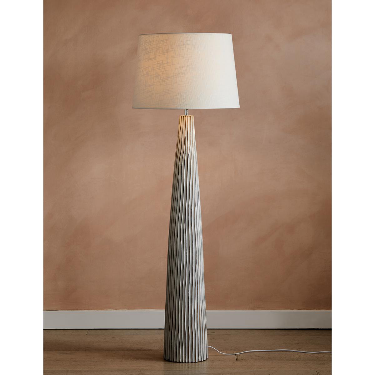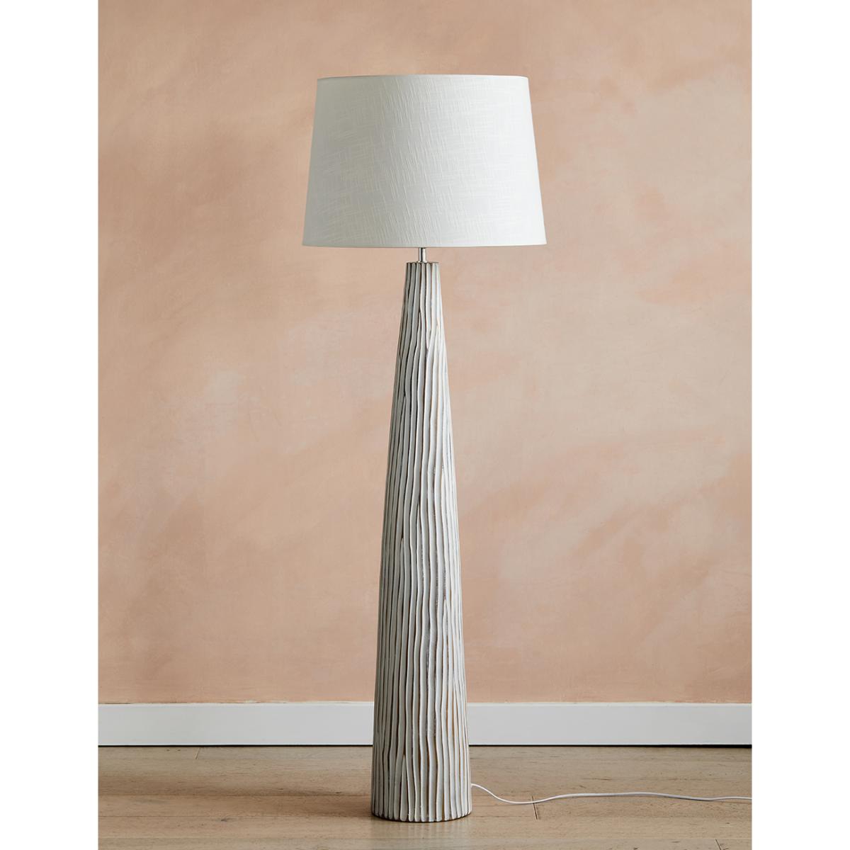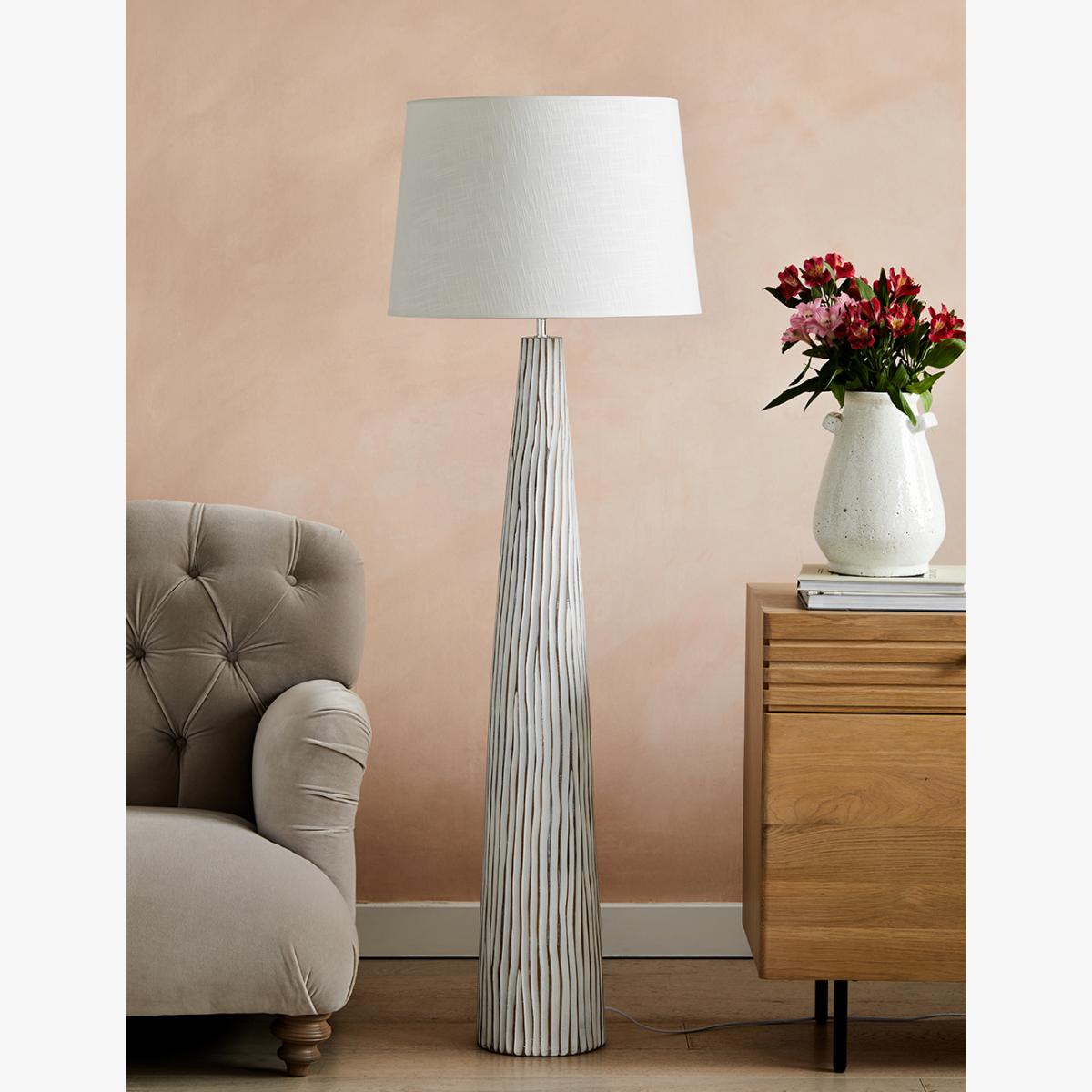 I love this floor lamp for its versatile, natural finish that mimics wood, making it a great addition to both contemporary and rustic interiors. Its neutral tones allow it to work well in a variety of colour schemes, from soft neutrals to more vibrant palettes, adding a subtle organic texture to the space. For styling, consider placing it beside a statement sofa or armchair to create cosy reading corners, and pair it with other wooden or woven accessories to enhance its earthy aesthetic. Practical tip: keep the shade slightly lower if you want to create an inviting, warm glow, perfect for relaxing or entertaining.