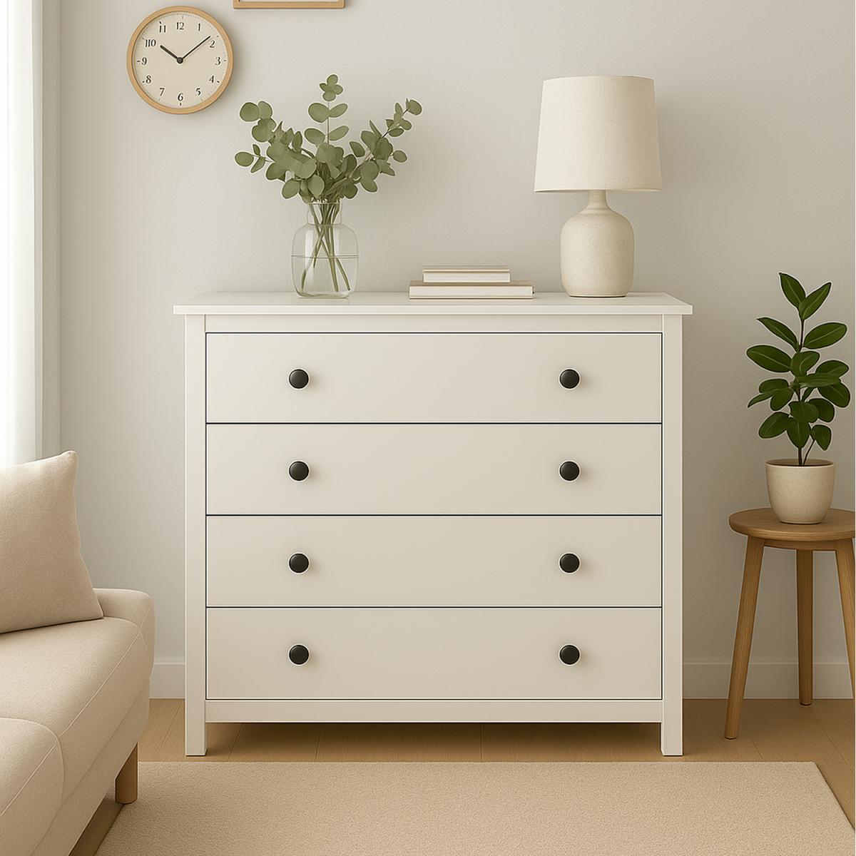 This coordinated set includes a spacious wardrobe, a four-drawer chest, and a two-drawer bedside table, everything you need to create a bright, organised, and stylish bedroom. The furniture is finished in a smooth, crisp white colour that reflects light beautifully, giving your space a clean, fresh, and modern feel while complementing any decor style. Expertly crafted from a combination of solid wood and high-quality MDF, each piece is built to last, offering strength, stability, and long term reliability. Designed with a full-width hanging rail and a top storage shelf, the wardrobe provides ample space for clothing, jackets, and accessories, helping keep your room neat and clutter free. Featuring four deep, smooth gliding drawers, this chest is perfect for storing folded clothes, bedding, and other personal items while keeping everything easily accessible. The matching bedside unit offers two roomy drawers for night-time essentials, with space on top for a lamp, alarm clock, or decorative accents. Delivered flat-packed for convenience, the set comes with clear, step-by-step instructions for quick and simple assembly at home.