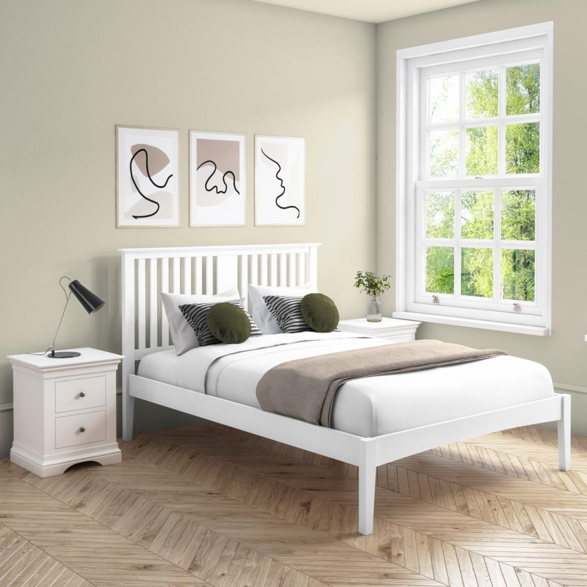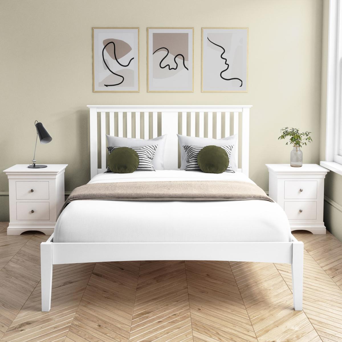 The white wooden double bed frame - Charlie - offers a clean, timeless look that works well in both modern and traditional interiors. I love its simplicity, which makes it versatile for various styling approaches, from minimalist spaces to cosy, layered bedrooms. It pairs effortlessly with neutral palettes or pops of colour through bedding, cushions, or throws. For added visual interest, consider styling with textured or patterned textiles, and incorporate natural materials like wool or linen to complement the wood. Practical tips include keeping bedside tables clutter-free to emphasise the frame's sleek lines, and maybe adding a statement light fixture to give the space a cosy glow. Overall, this bed is a great anchor piece that can adapt easily to your evolving decor style.