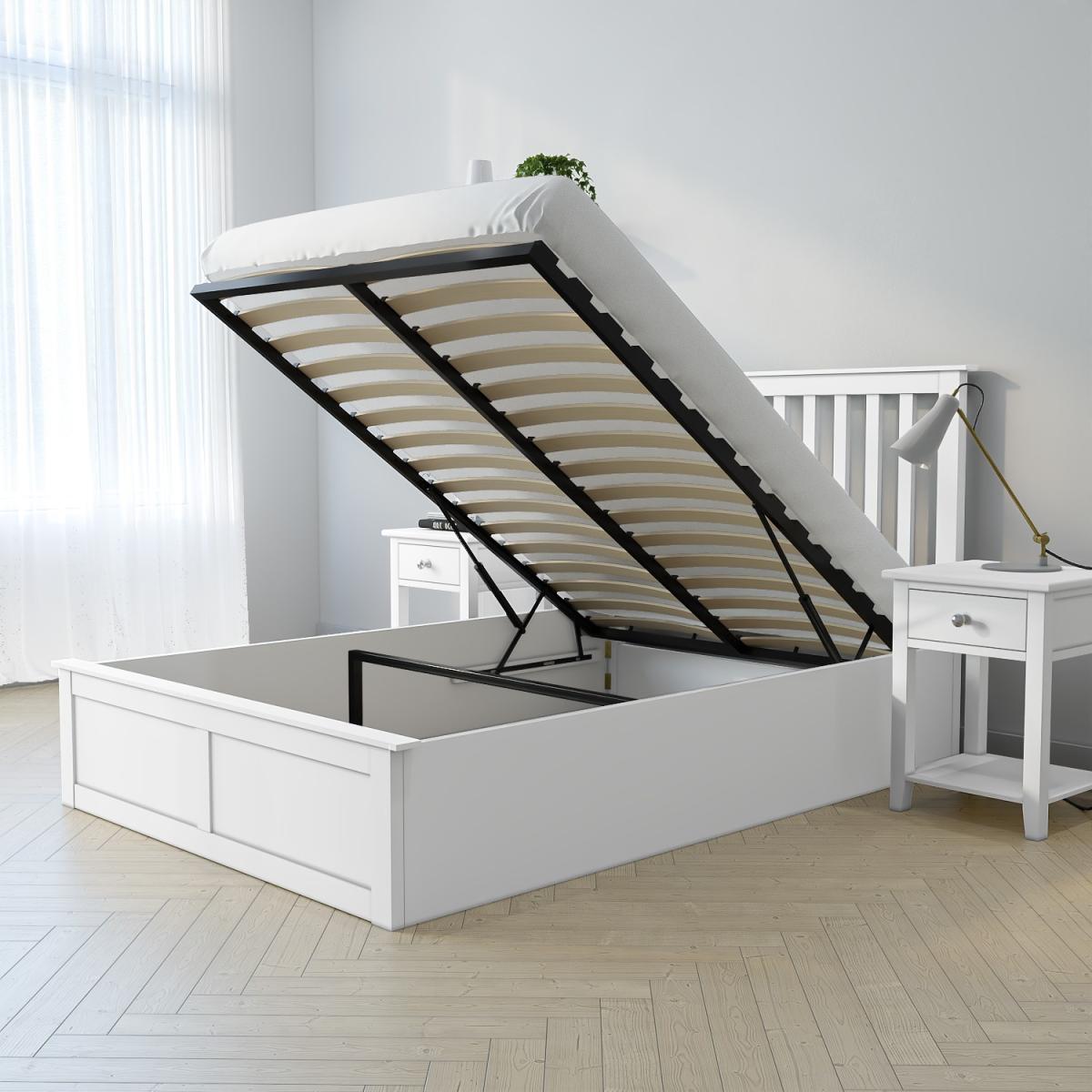 The Anderson double ottoman bed offers storage capabilities alongside a timeless and classic design which would fit any bedroom. Discover an ample sized storage compartment under the slatted base, perfect or storing away items and keeping your floor clear. Accessed by lifting up the base and mattress, the gas-lift mechanism makes the compartment easy to get to. The white painted finish will suit any home interior and create a light a fresh feel for your room.