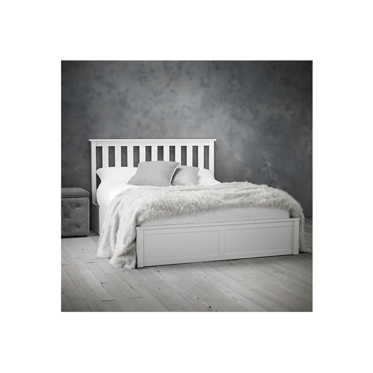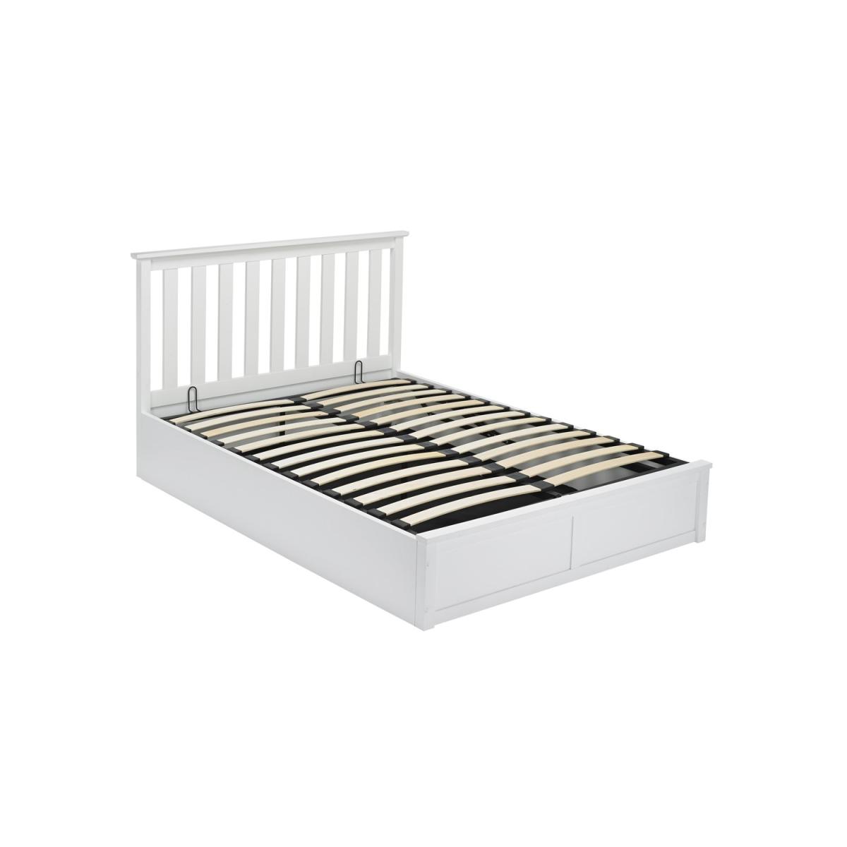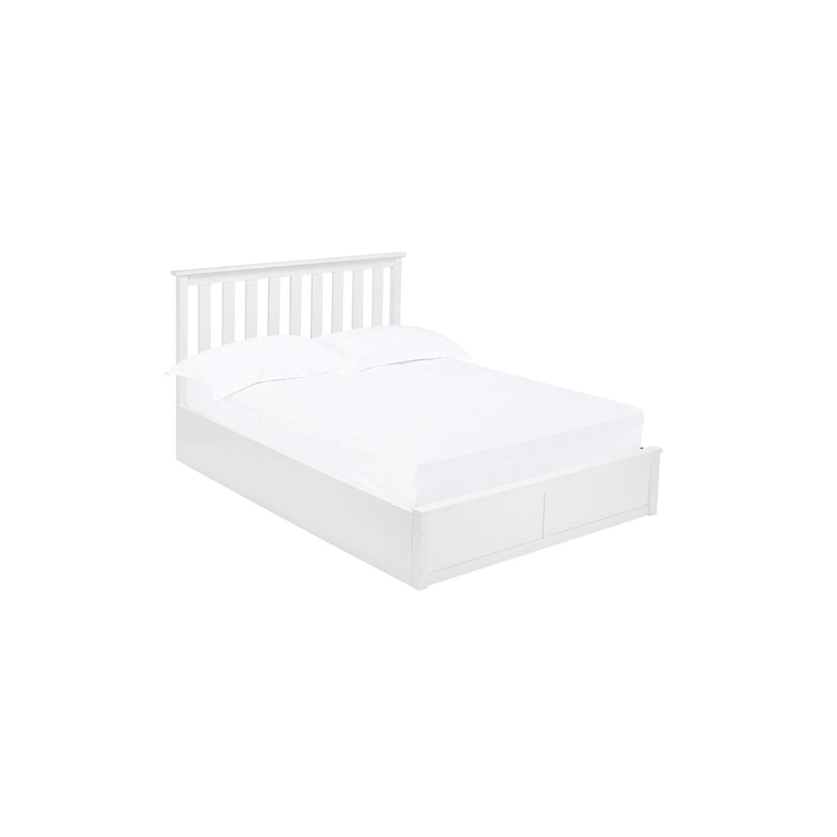 Dimensions:H100.5 x W1505 x D201 cm A clean, simple shaker style bedframe, the Oxford bed is as stylish as it is functional. With an opening base that provides plenty of under-bed storage, the Oxford is ideal for those with minimal space. The Oxford has a sprung slatted base to give natural bounce, adjusting to where pressure is most exerted to provide greater comfort and excellent mattress support. Available in white or grey painted finish. Features: Clean, simple shaker style bedframe White painted finish Ideal space saving solution. Storage depth is 32cm Available in double or kingsize Easy assembly