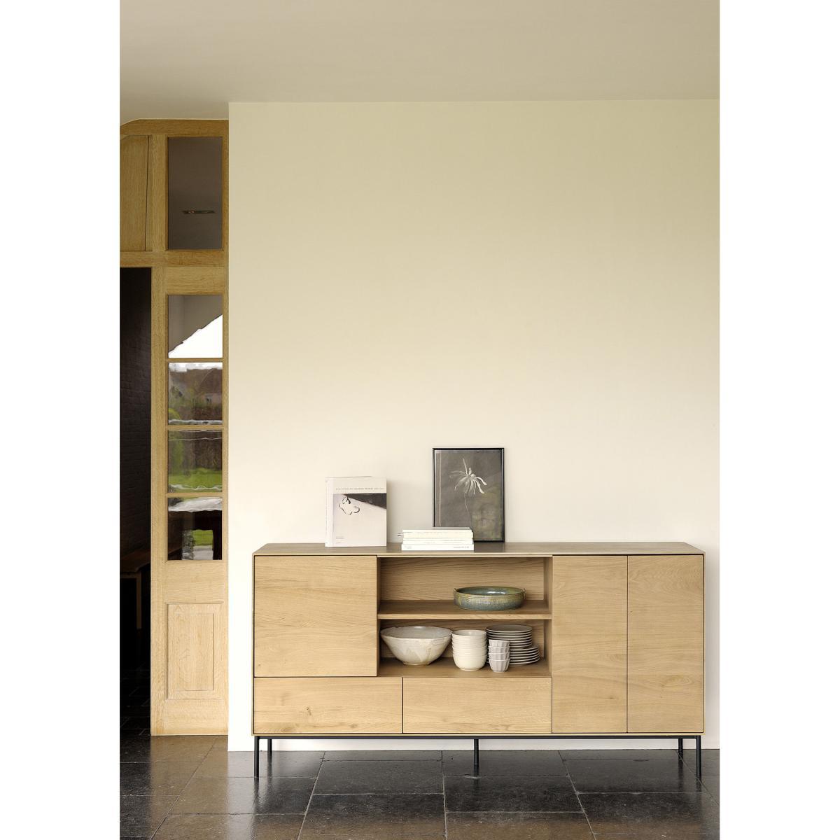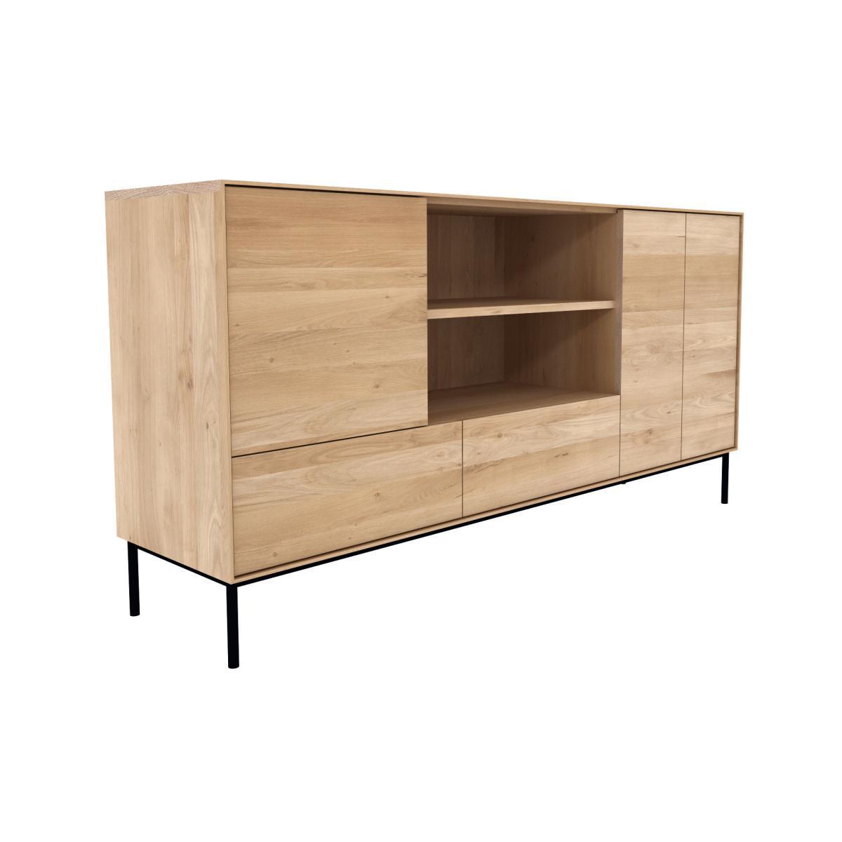 For twenty-five years, Belgian brand Ethnicraft has paid tribute to the beauty and authenticity of solid wood. Timeless, extremely strong and durable, these are quality pieces of furniture that age wonderfully and are passed down from generation to generation. Handcrafted, Ethnicraft furniture is the result of exceptional know-how. Behind the apparent simplicity of the design hides a constant search for innovation. Integrating advanced techniques into the creative process, each new design is worked out down to the smallest detail. Respectful of the environment, the wood used comes from sustainably, responsibly managed European forests (FSC Co. C certification which attests that the wood was produced with respect for the environment and social values). Inspired by Scandinavian wooden furniture, Whitebird is a superb solid oak sideboard with clear, clean lines. Oak stands out for its warm, natural finish as well as a superb veined aspect which further reinforces the living character of the product. The black metal base brings a graphic, contemporary dimension to the silhouette.