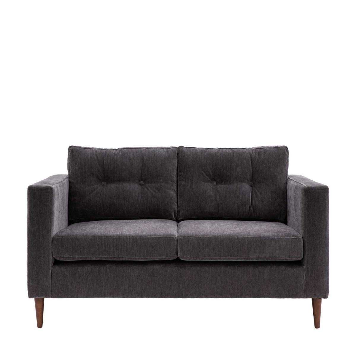 The Whitekirk sofa offers the best of stylish contemporary design. Featuring sleek lines with block arms and button detailing on the back, this chic sofa pairs charcoal fabric upholstery with elegant tapered wooden feet for the ultimate modern masterpiece.