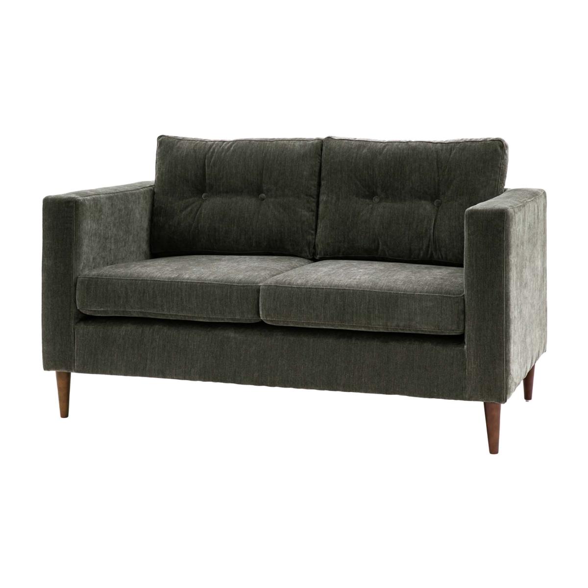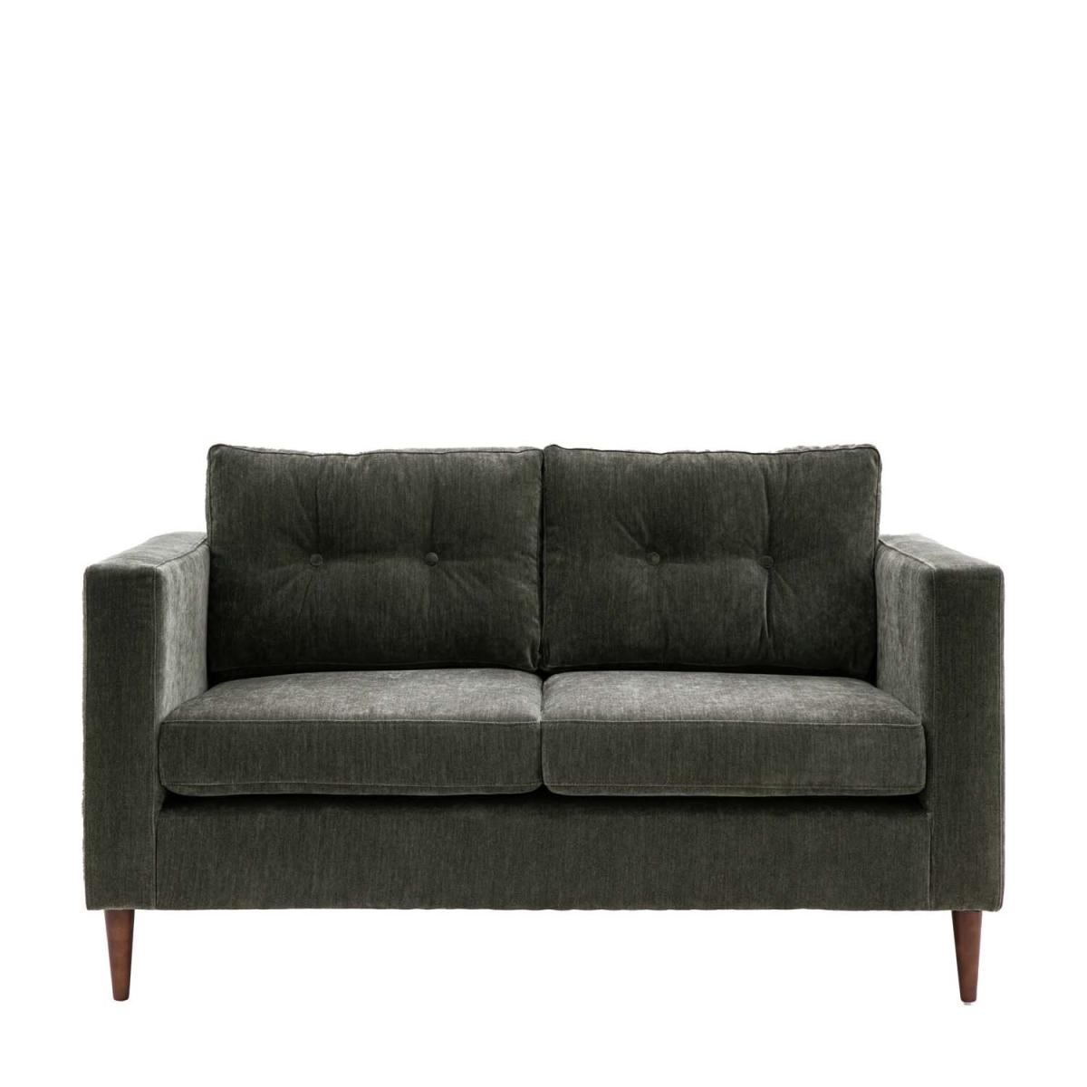 The Whitekirk sofa offers the best of stylish contemporary design. Featuring sleek lines with block arms and button detailing on the back, this chic sofa pairs forest green fabric upholstery with elegant tapered wooden feet for the ultimate modern masterpiece.