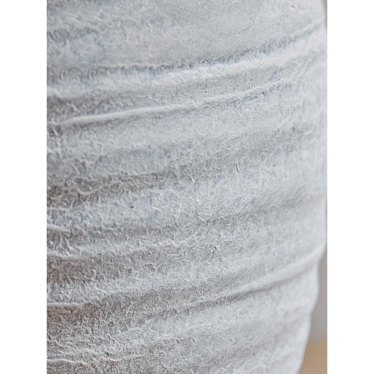 Made from pottery with a rustic, moulded concrete look to its finish, our lamp has a gentle ribbed finish and adds a touch of texture to any space. Casting a soft light through a pale cotton linen shade, it is perfect for any neutral, rustic or Scandi inspired interior.