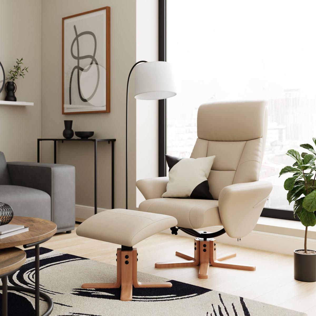 I love the Whitham faux leather swivel chair for its versatility and timeless appeal. Its neutral, natural tone makes it a great addition to both modern and classic interiors, adding a touch of understated sophistication. Practical for everyday use, the swivel function offers flexibility in seating arrangements, making it ideal for a cosy corner or a reading nook. To style it, consider pairing with soft throw cushions for extra comfort, and place it against a backdrop of statement artwork or a chic side table to create a welcoming, functional space. Its faux leather finish is also low-maintenance, perfect for busy households while still looking stylish.