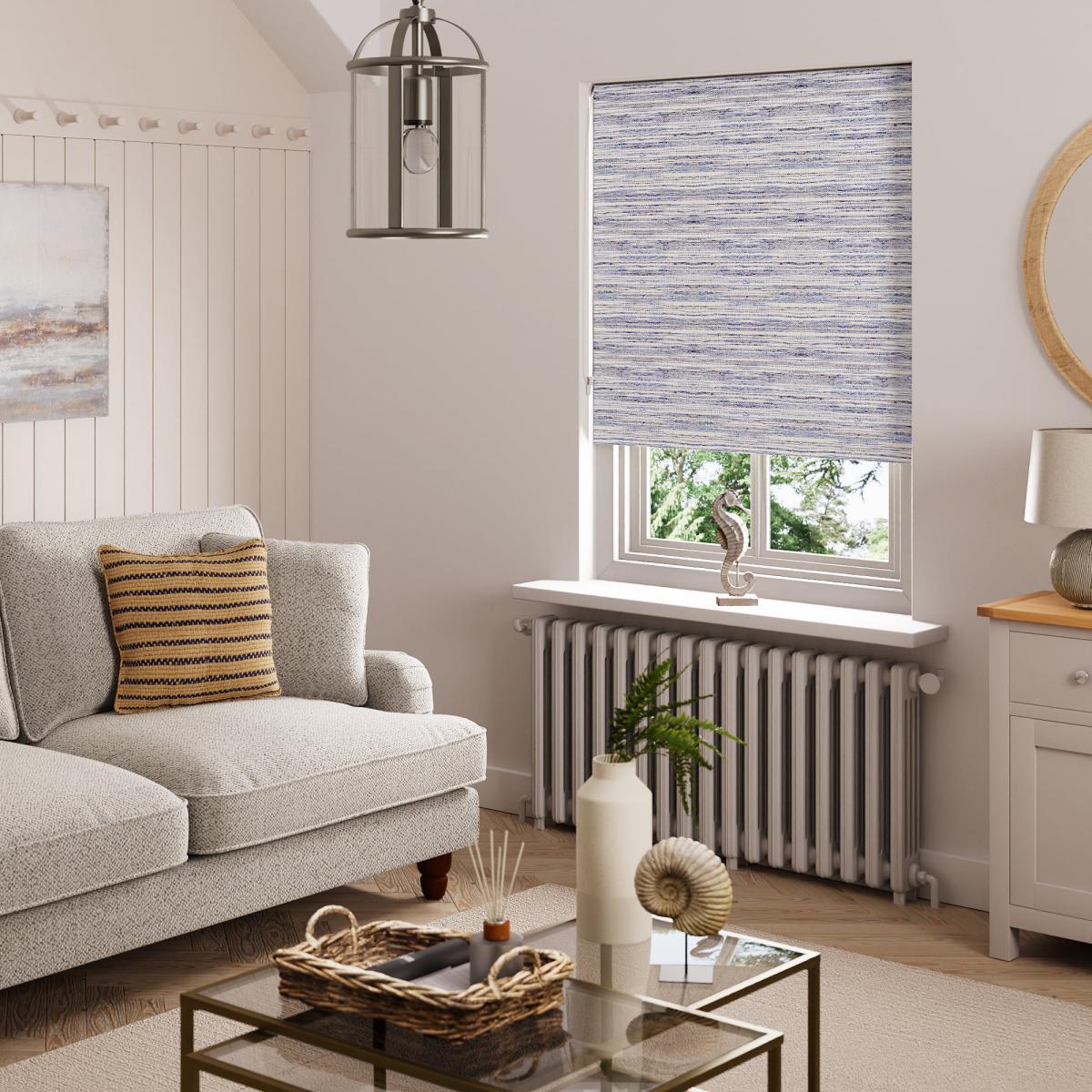 Designed with a beautiful, irregular stripe in blue this blackout roller blind offers you an easy style update for your window. The quality blackout coating prevents unwanted external light from entering your home and improves privacy by blocking the view into your home from the outside. This roller blind is available in a variety of sizes and is supplied with all fixings included for added convenience. This blind can be cut down to suit your requirements.
