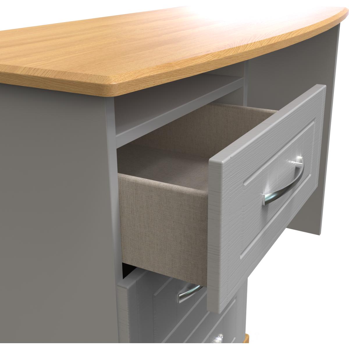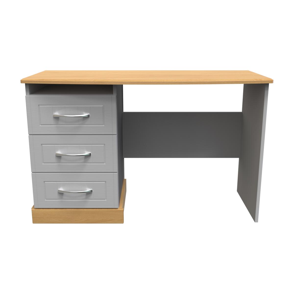 This practical 3 drawer narrow deskvanity is perfect for any bedroom or office. A matching stool and mirror (in 2 sizes) are also available. This range combines classical elegance with a traditional design. Featuring curved bow handles and contrasting tops and plinths. Available ina range of scratch reistant finishes. All our furniture is made in the United Kingdom, to the highest quality. It is delivered direct to your location of choice by one of our two man delivery teams, and come full assembled (although legs may be removed to prevent damage in transit).
