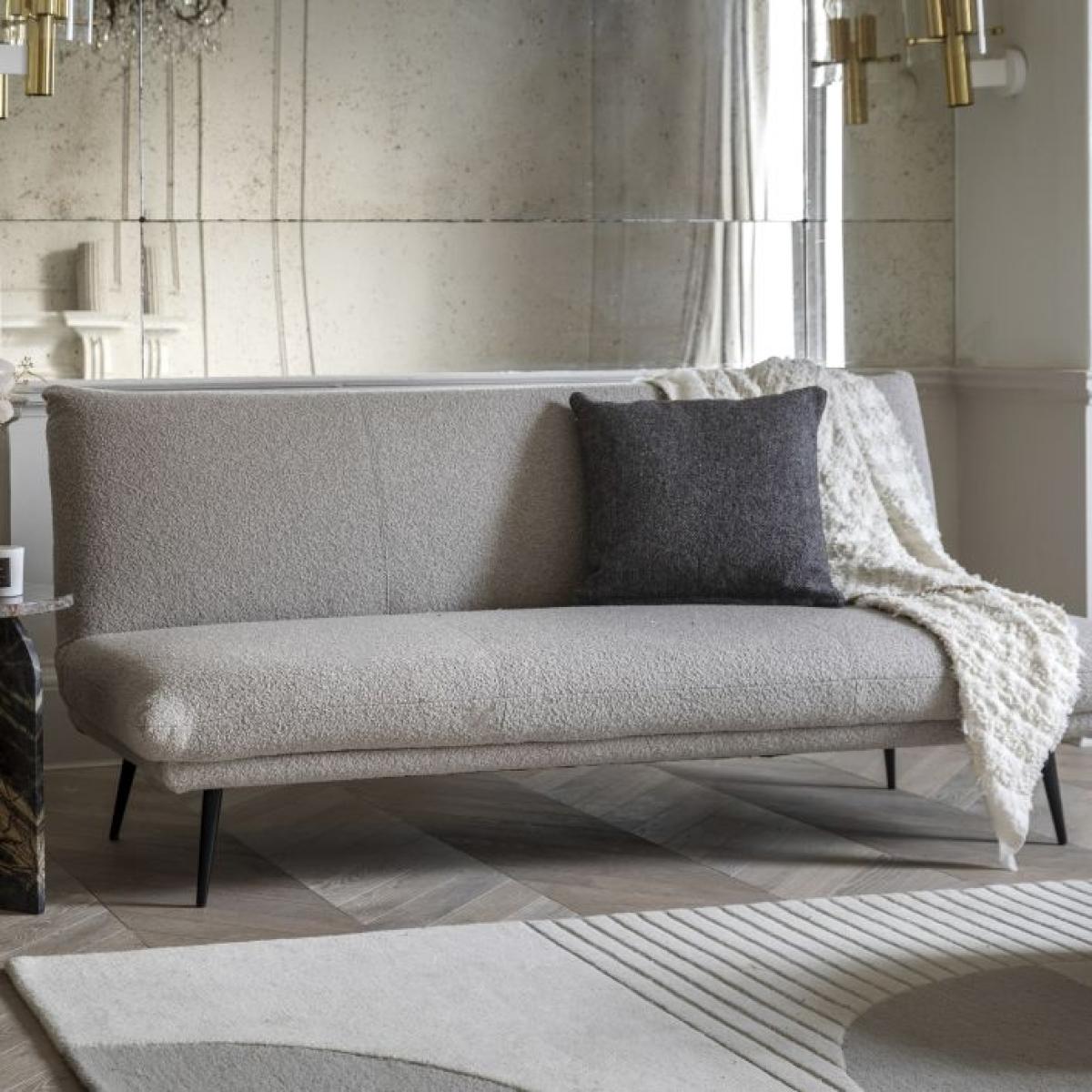 Offering simple contemporary design, this lovely sofa bed would suit a range of interiors and gives a practical solution for when guests stay overnight, with the back quickly and simply folding down to create a bed. Material:Pine 45% / Foam 23% / Fabric 13% / Plywood 10% / Iron 9%. Colour/Finish: Light Grey.