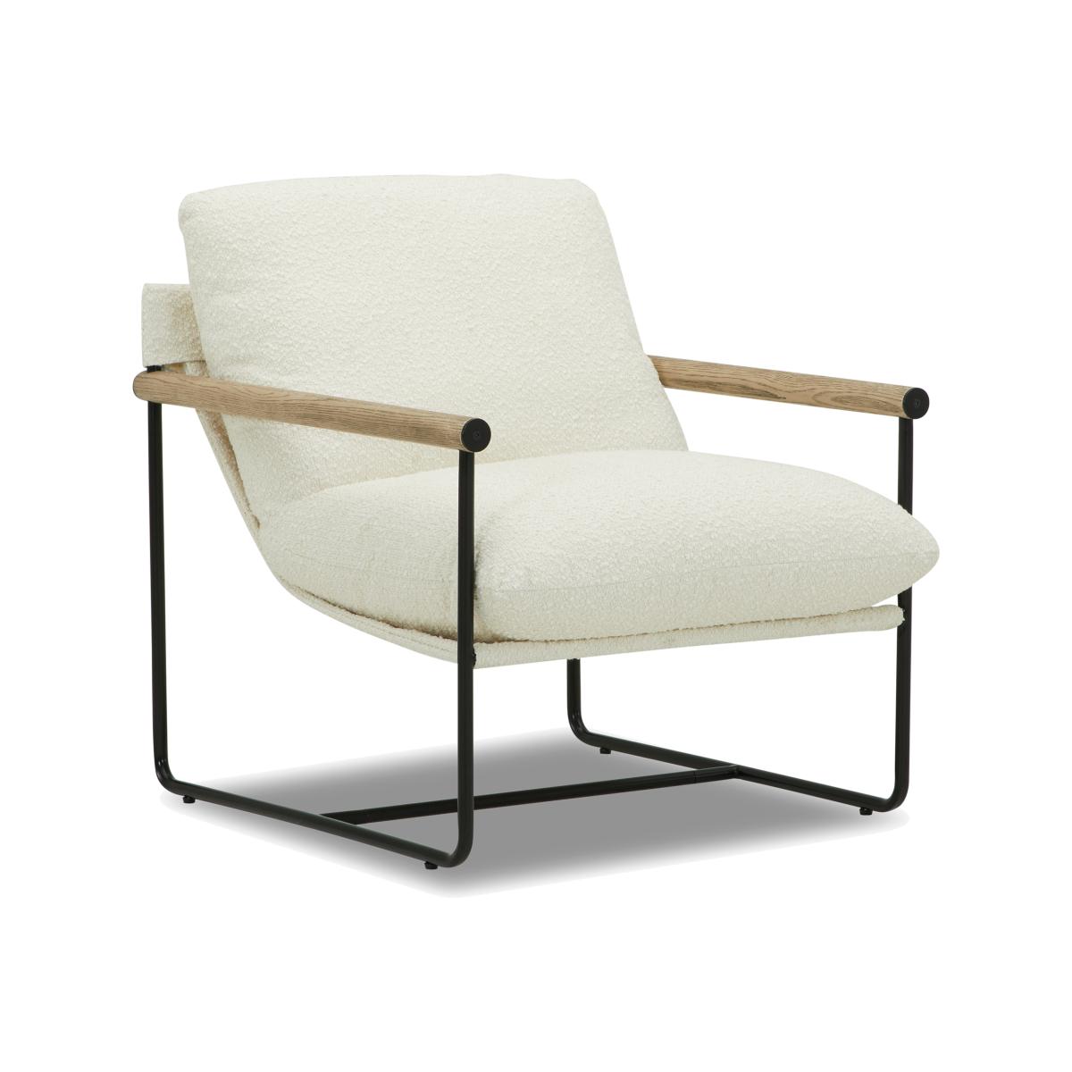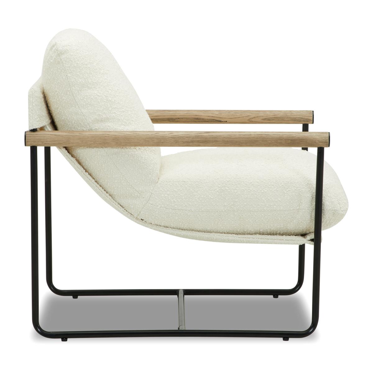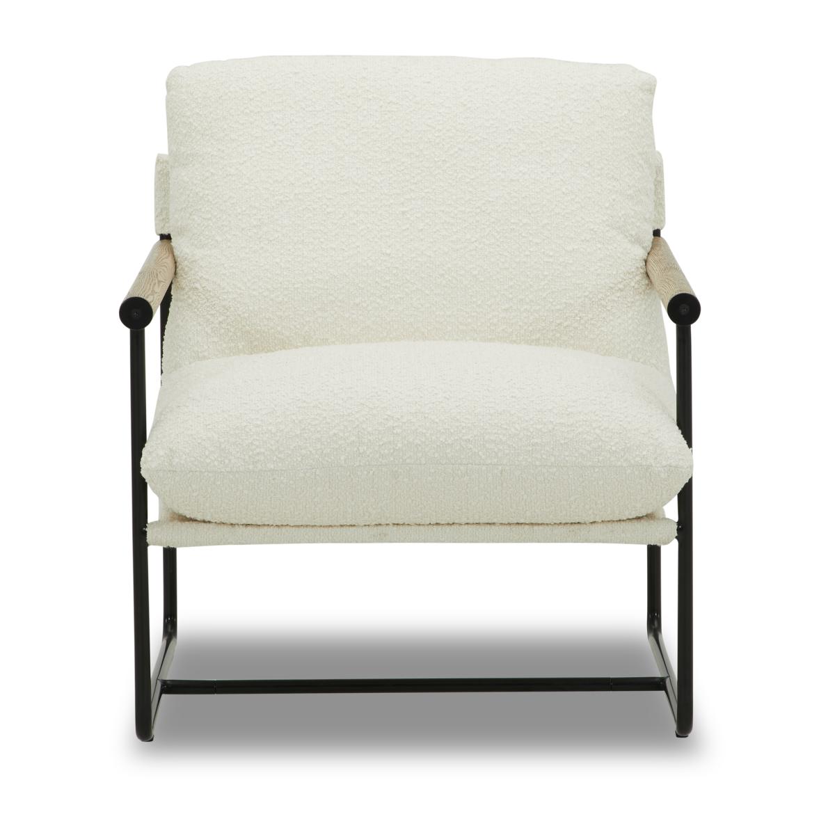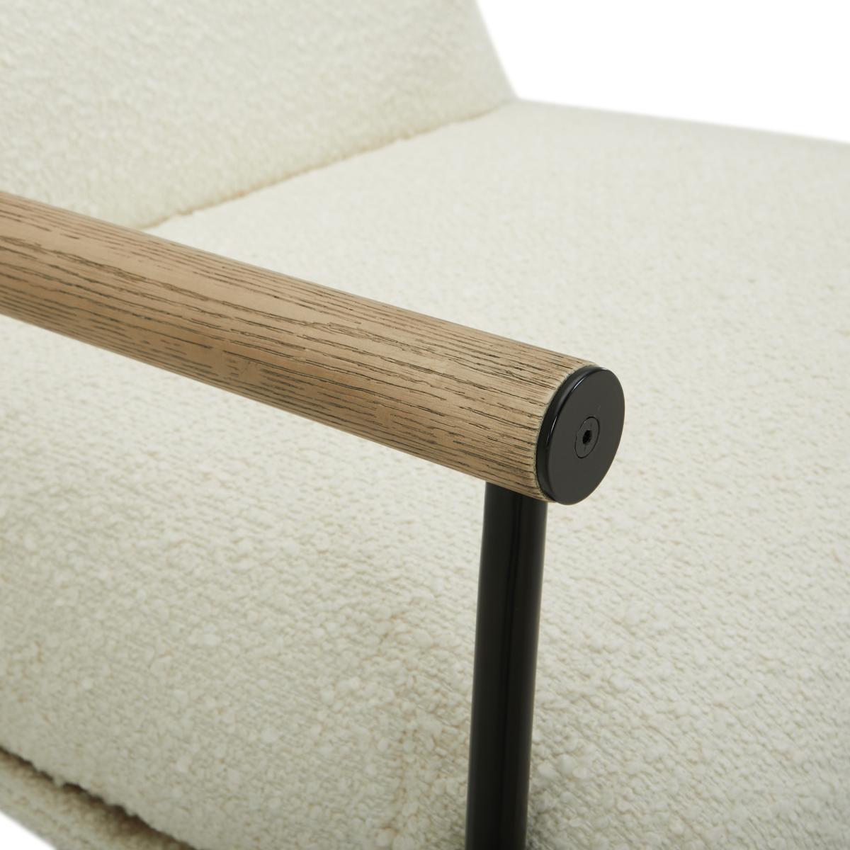 On trend dressed in ivory boucle fabric and, extremely comfortable. The Whittaker chair is constructed in sleek black metal with soft wooden arms for a natural feel, filled generously with foam the Whittaker Chair will become your favorite place to read a book, have a cup of tea or take a moment for yourself. The Whittaker Chair can take home in your living room, office or conservatory