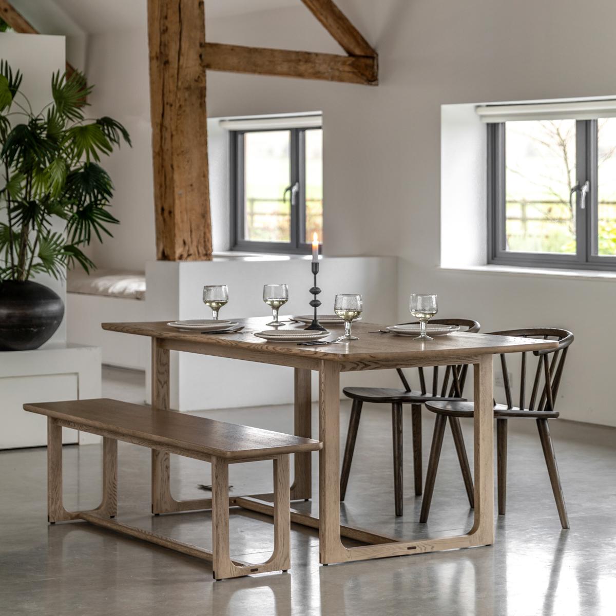 I’m a fan of the Whittle table for its clean lines and warm oak tone - it slots straight into Scandi, Japandi or modern-minimal spaces without fuss. Its simple under-frame leaves plenty of legroom, so pairing it with a mix of chairs (think charcoal-upholstered or slim-framed metal) brings in contrast and texture. For styling, keep the tabletop largely clear: a low-profile runner in natural linen and a single pottery vase with seasonal foliage is all you need to make it feel lived-in rather than cluttered. If you’ve got the space, a slim bench on one side adds casual seating and softens the overall look.