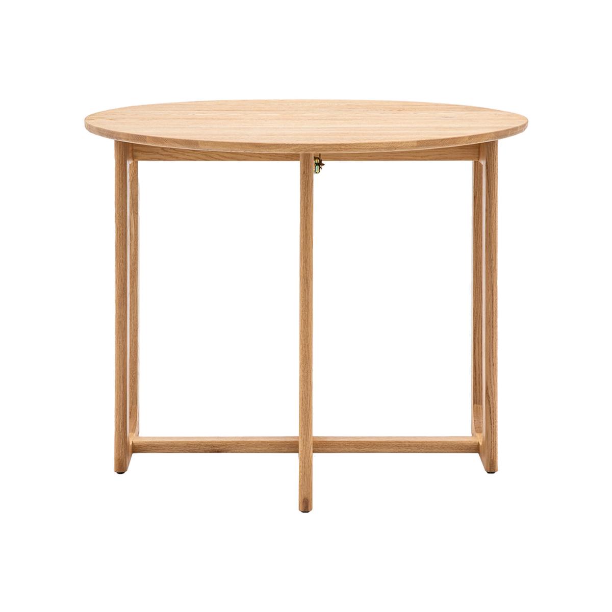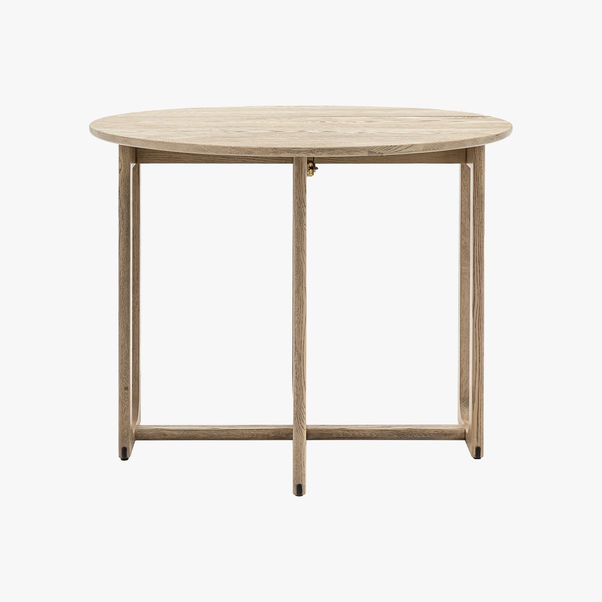 I’m a fan of this fold-out oak table for its clean lines, light natural finish and space-saving design. It slips seamlessly into Scandi-inspired or contemporary schemes, and its modest diameter works well in city flats or breakfast nooks. For styling, keep the look uncluttered: a simple ceramic fruit bowl or low glass vase makes an easy centrepiece, while slim-profile chairs in muted tones keep the layout airy. When not in use, fold it flat against a wall and lean a piece of artwork behind it to make the most of smaller spaces.