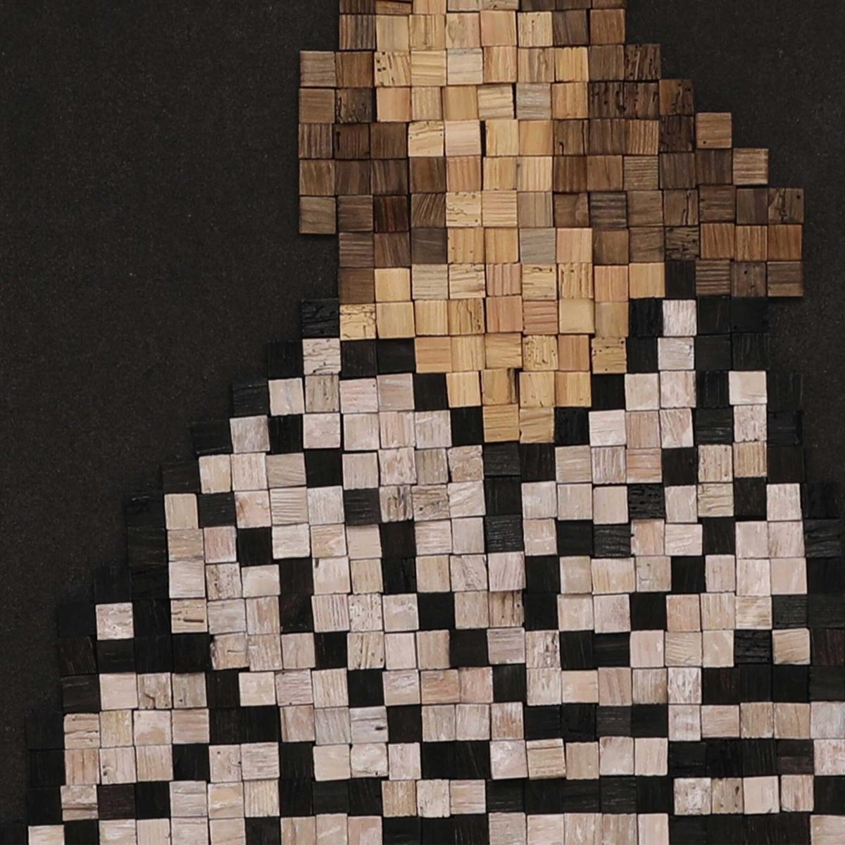 This picture frame, crafted from 100% recycled pine wood, beautifully surrounds a mosaic silhouette of a woman. The natural warmth and texture of the reclaimed wood add rustic charm and depth to the striking artwork. Each frame is unique, celebrating sustainability and timeless style. Perfect for adding an artistic and eco-friendly touch to any room, it’s a meaningful way to showcase beauty, creativity, and thoughtful design all in one.