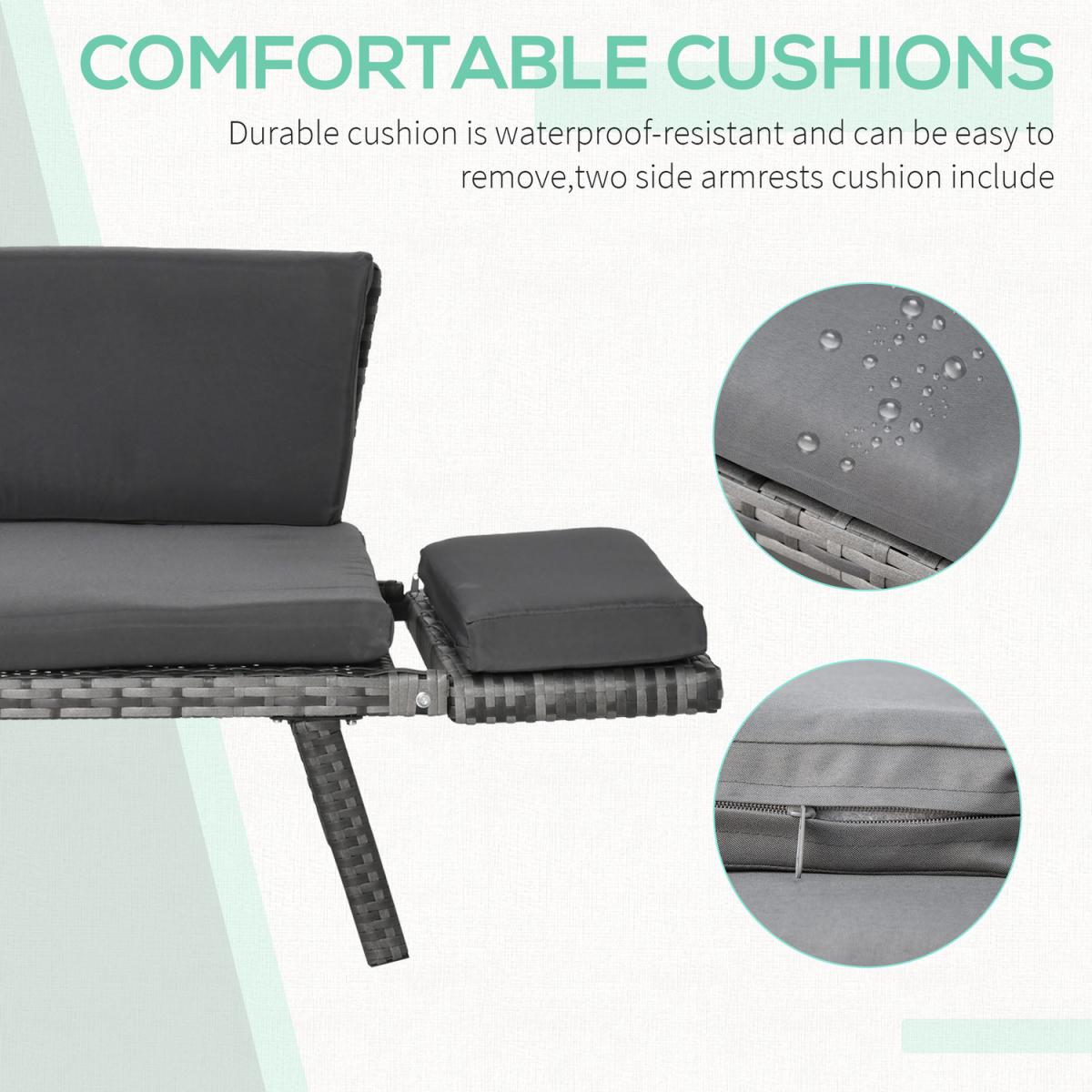 Make your outdoor times even better than before with this convertible sofa from Outsunny. A 2-in-1 design, it features side armrests that can be left up or down, giving you greater choice when it comes to choosing how you want to relax outdoors. For the underlying frame, reinforced steel is used to ensure ensuring strength and stability, with PE rattan hand woven around for a look that blends in with your garden effortlessly, whilst protecting the bed from light weather damage. It's finished with thick padded cushions which ensure you'll be resting comfortably all day long. A great way to laze a sunny afternoon away.