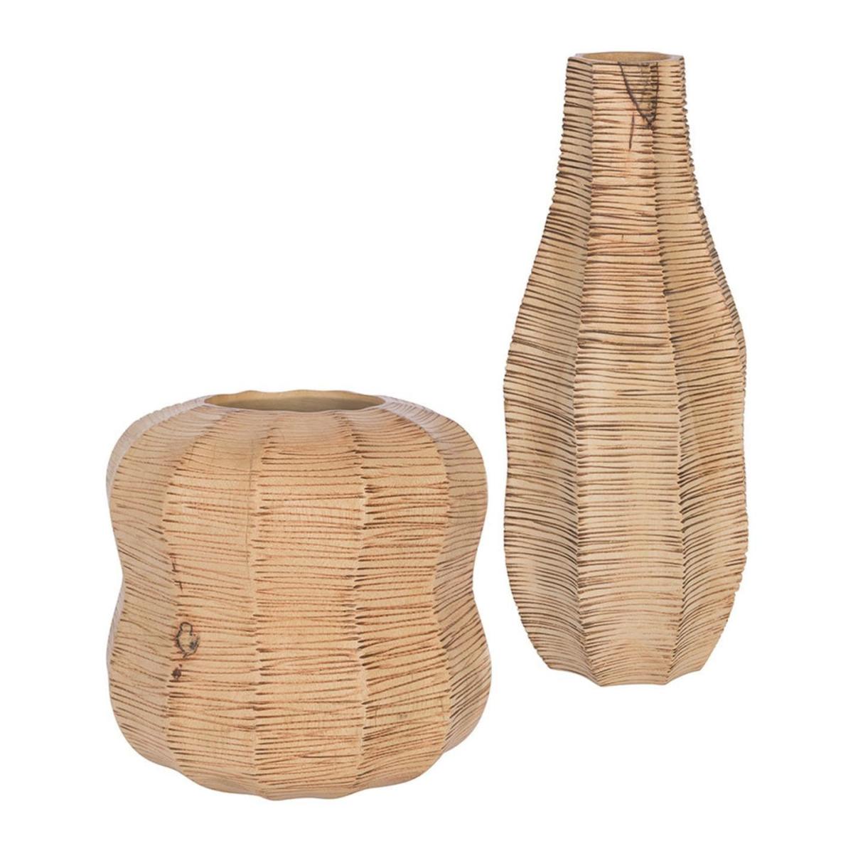 I love this wicker effect wooden vase because it adds warmth and texture to a variety of interiors. Its organic, earthy look works particularly well in boho, coastal, or Scandi spaces, where natural materials are key. For styling, I’d suggest pairing it with dried flowers or understated greenery to enhance its tactile qualities-placing it on a wooden sideboard, mantle, or shelf can create a relaxed yet polished vibe. It’s versatile enough to serve as a standalone statement piece or layered with other textured accessories for a more eclectic arrangement. Just remember to keep its surroundings simple, so its natural charm truly shines through.