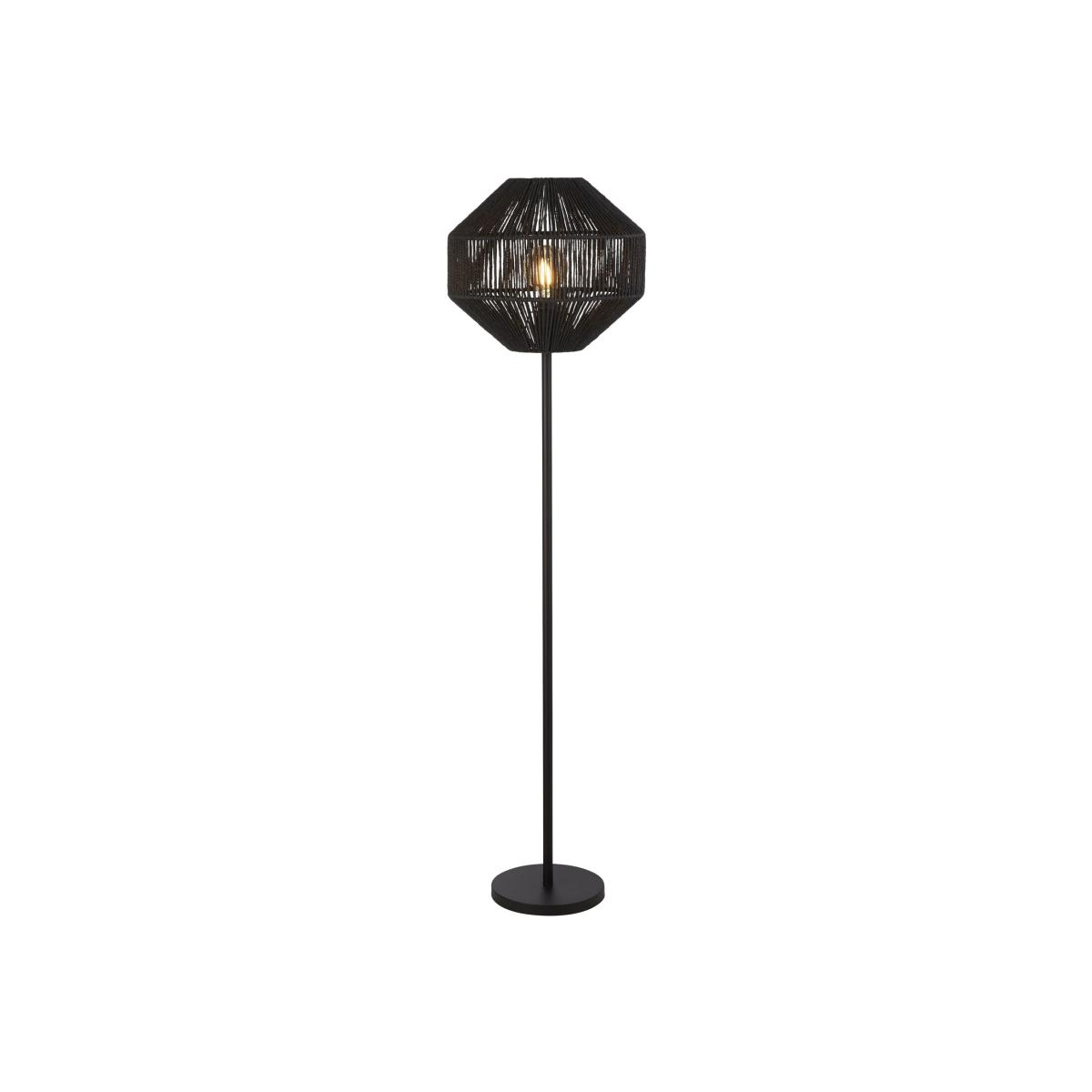 Wicker Floor Lamp Matt Black Metal and Black Rope Shade - Black