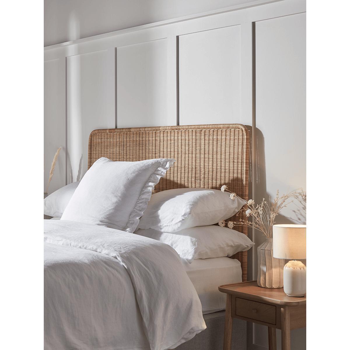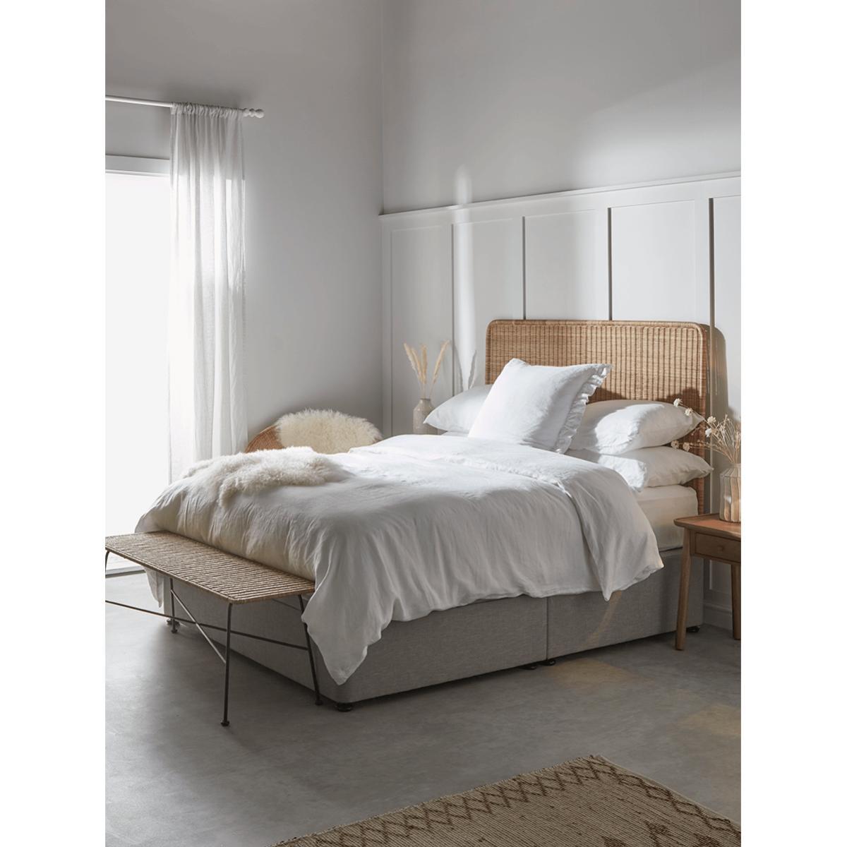 I love the wicker headboard as it adds instant warmth and texture to a bedroom, making it feel inviting and cosy. It works particularly well in bohemian, coastal, or Scandi-inspired interiors where natural materials are key. For styling, consider pairing it with soft, neutral bedding to highlight its natural weave, and add tactile accessories like linen throws or knitted cushions for added comfort. To keep the look balanced, avoid clutter around the bed and perhaps introduce a few greenery or wicker baskets to enhance the organic feel. This headboard is versatile, making it a great focal point without overwhelming simpler or minimalist schemes.
