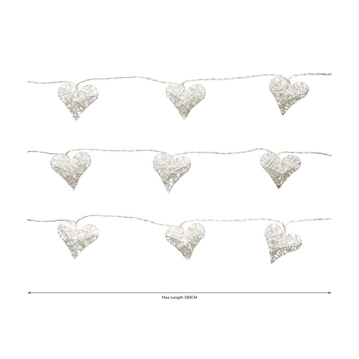 Made from wicker, this beautiful string of hearts lights will add a cute and loving feel to your home. The modern and natural colourway mixed with the fun heart shape makes these battery operated, white bulb lights perfect for your home.