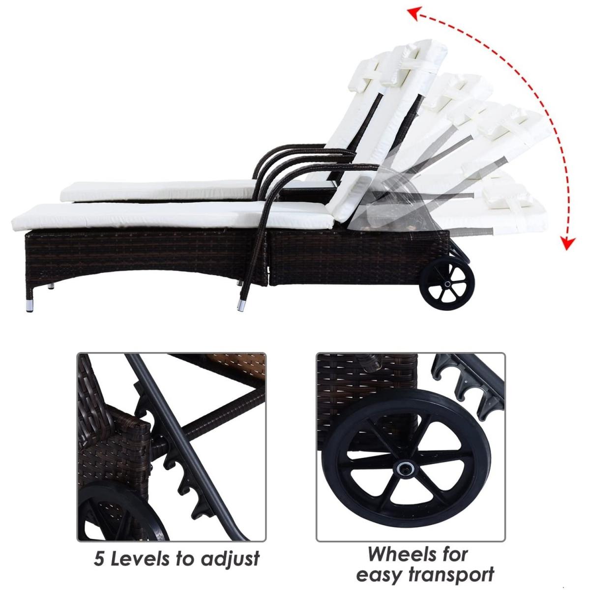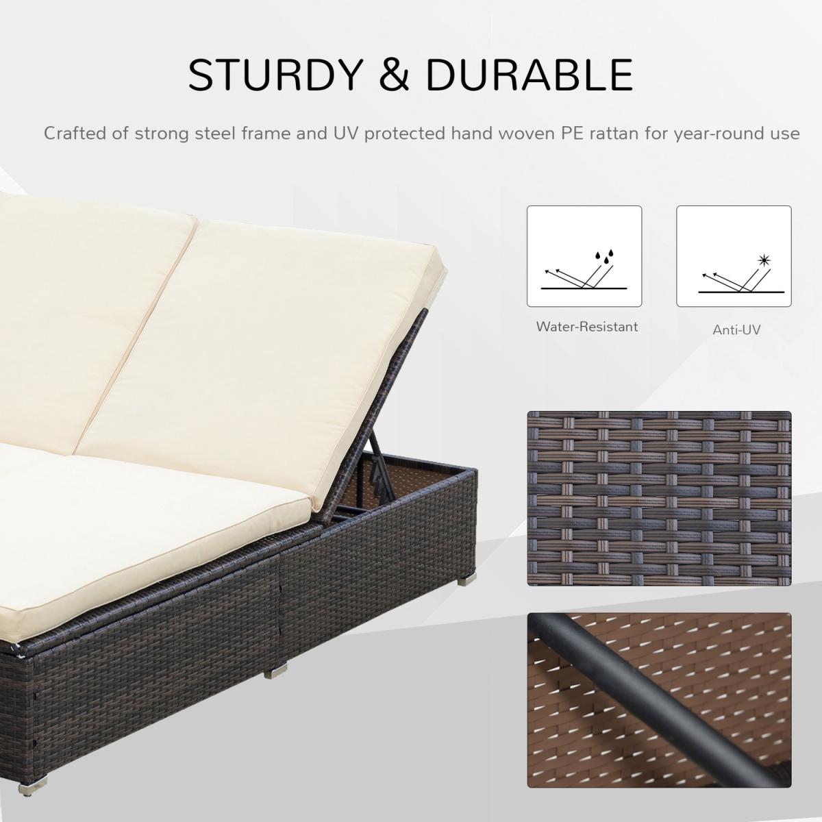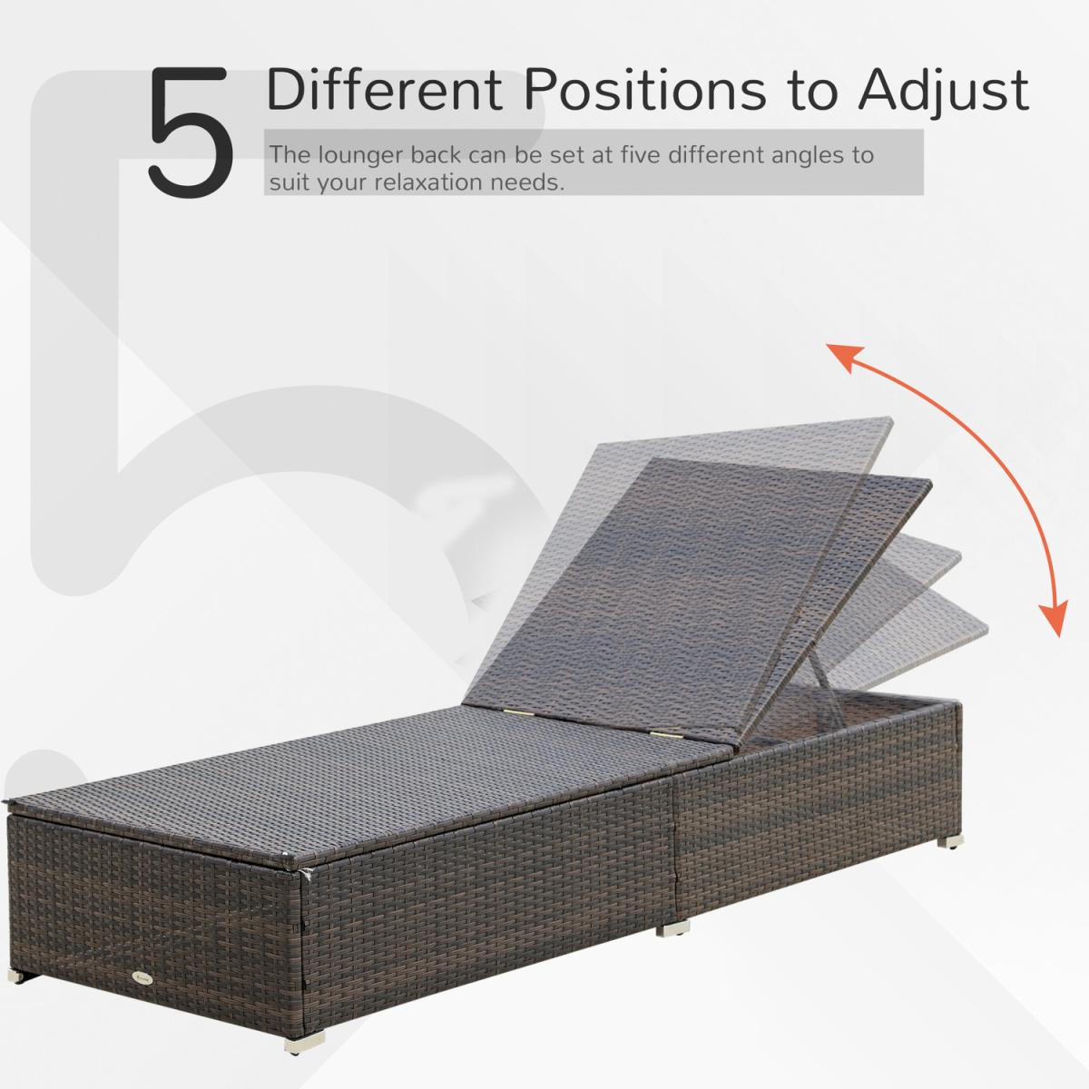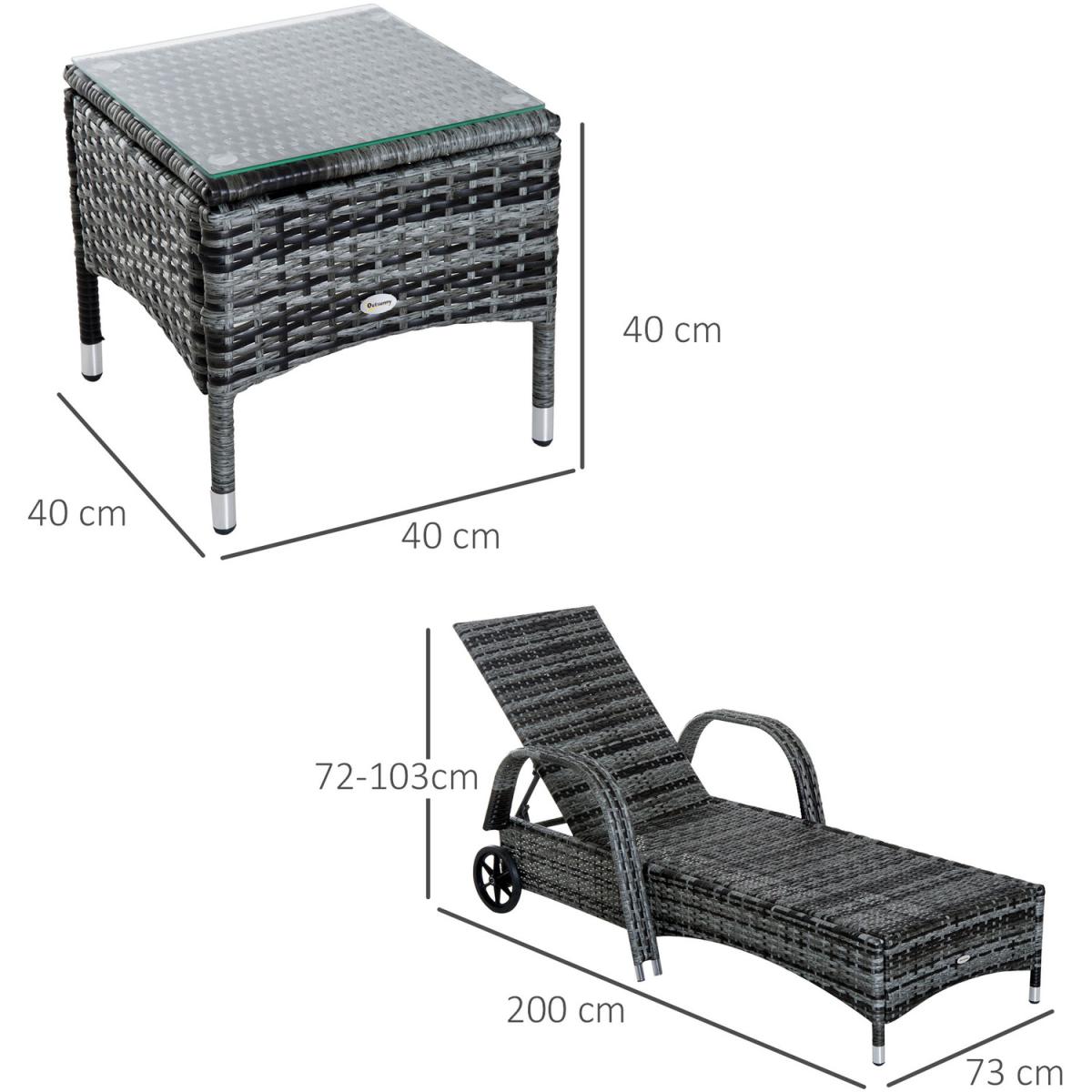The rattan lounger set from Outsunny comes complete with 2 loungers, 1 side table and cushions. The seat has 5 adjustable positions to give maximum relaxation and comfort. The side table also has a glass top to keep your drinks at easy reach, and the set can be used indoors and outdoors.