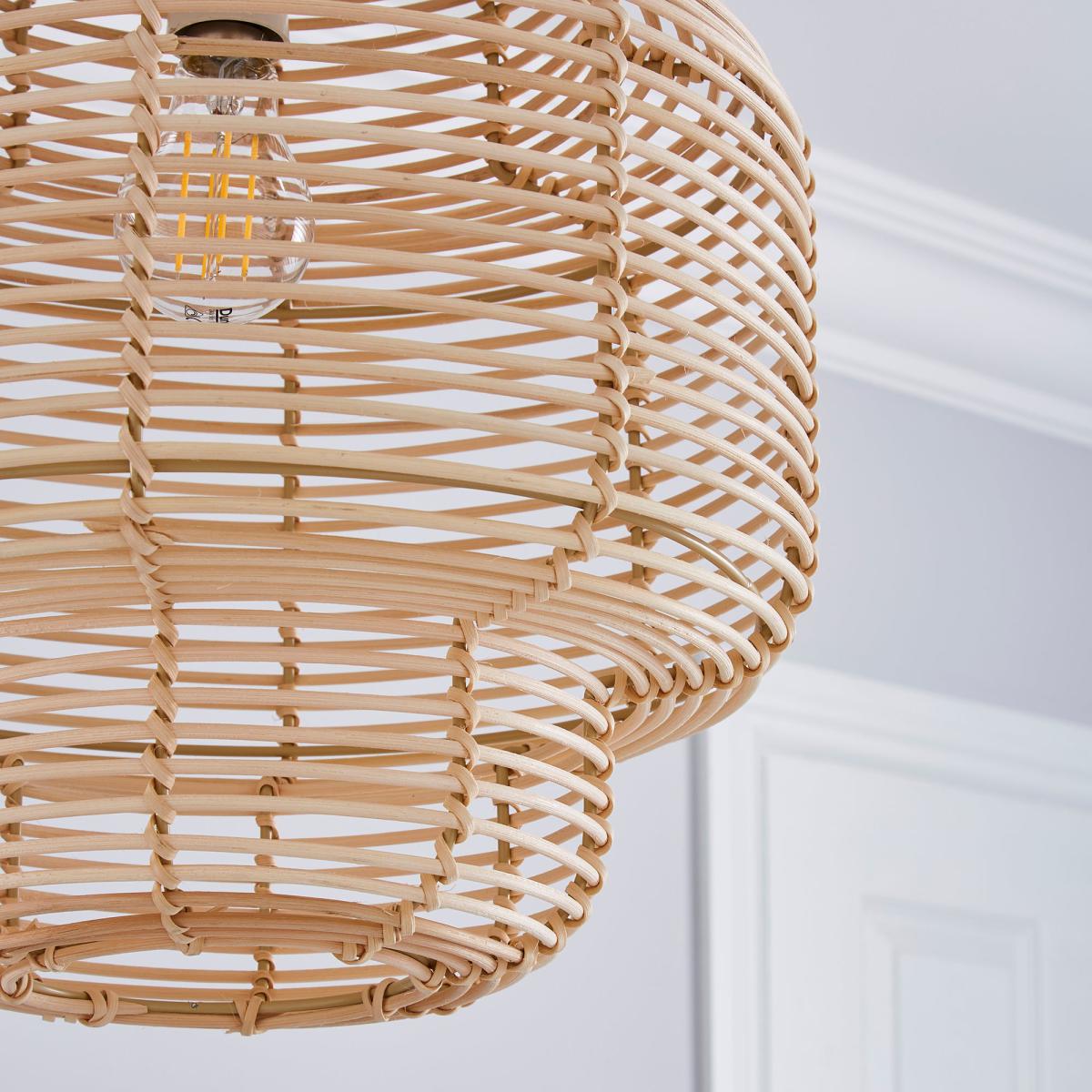 I love this lighting piece for its natural, relaxed vibe and versatile design. The wicker tiered shade works particularly well in coastal, boho, or Scandinavian-inspired interiors, adding warmth and texture without overpowering the space. Practical styling tips include pairing it with light-coloured walls and gentle, neutral-toned furnishings to enhance its airy feel or using it as a statement feature in a dining or sitting area. It's perfect for spaces where you want a touch of organic charm, and its easy fit design makes it a practical choice for both existing and new setups. Keep the surrounding accessories simple to let the wicker really stand out.