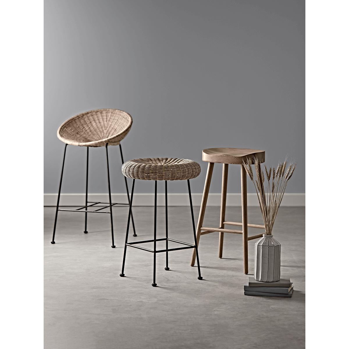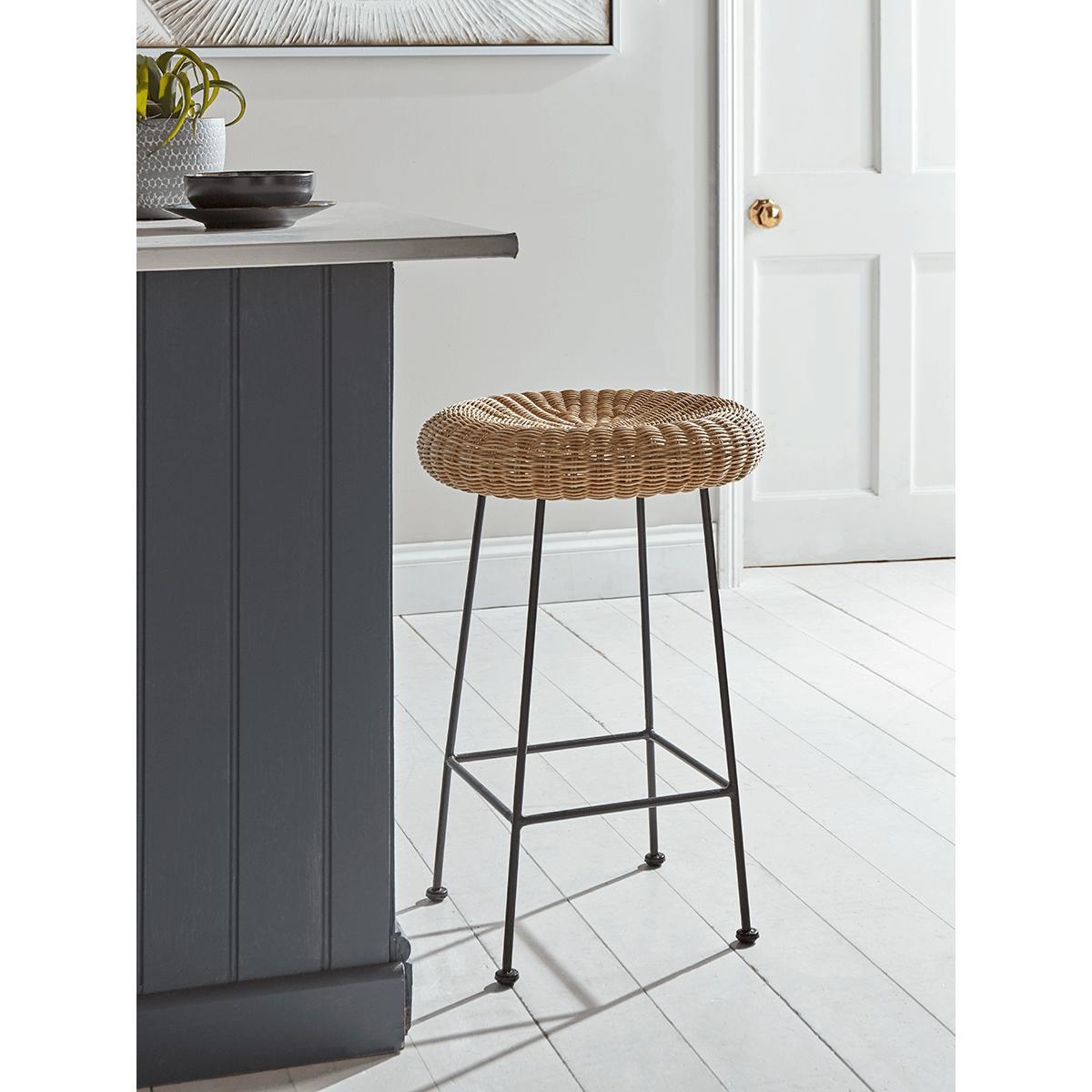 An effortlessly stylish wicker topped stool thats simple design doesnt pare back on comfort. The tightly woven wicker nest formed seat, slender dark frame and footrest makes for the perfect spot to perch.