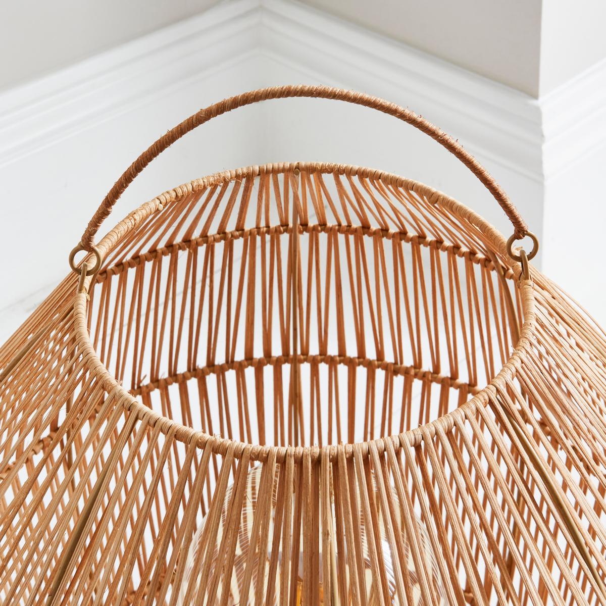 Add a touch of bohemian charm to your space with the Wicker Woven Floor Lamp. Its unique wicker style and portable handle feature make it a standout piece that complements any decor. The convenient in-line switch allows for easy operation, whilst the 1. 8m black cable provides ample reach for positioning the lamp exactly where you need it.