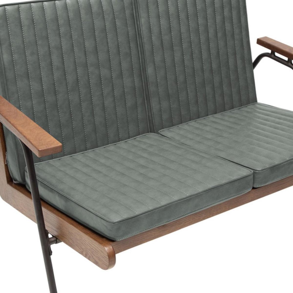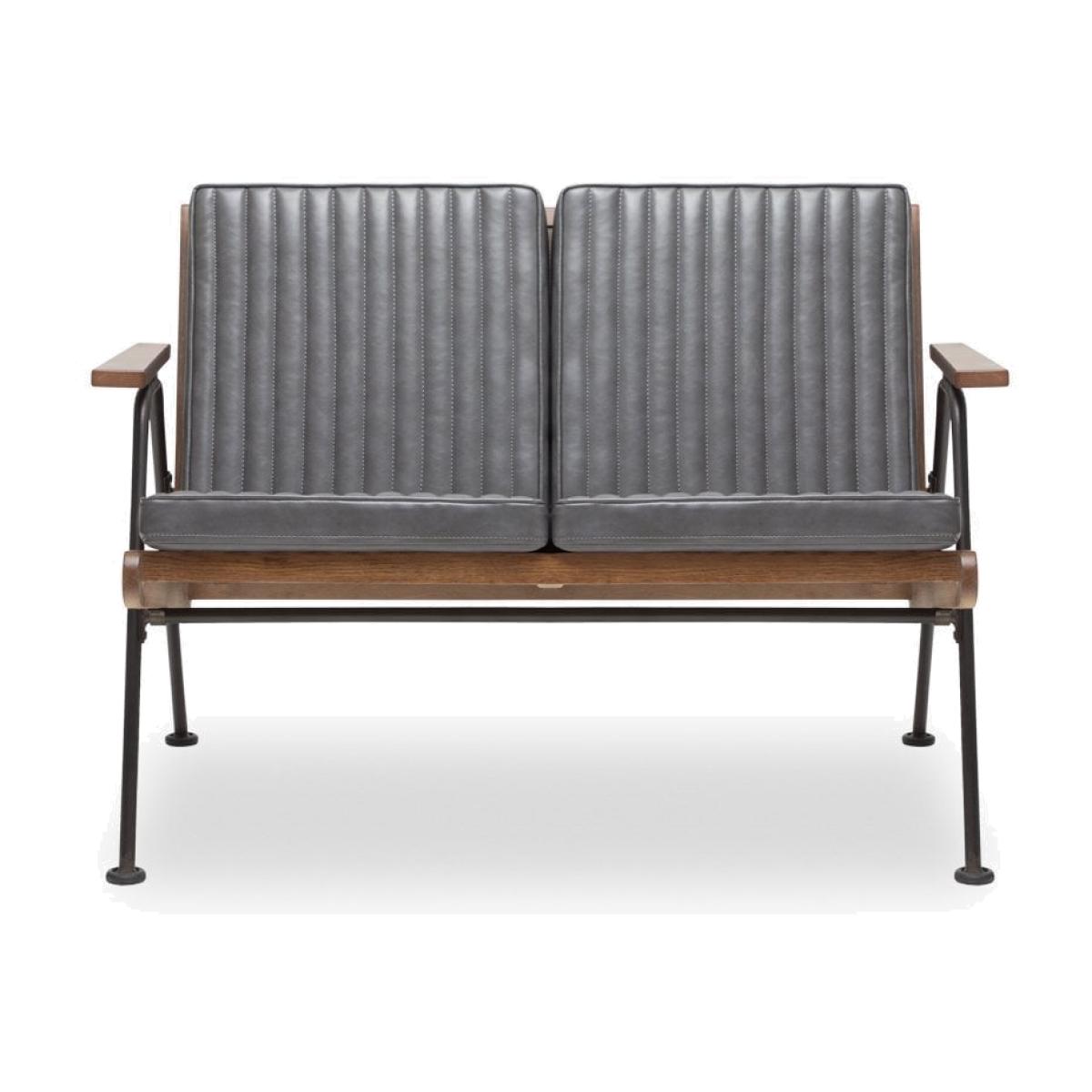 Catering to those who like their mid-century furniture with an industrial feel, this Wickham wood and metal two seat sofa, upholstered in grey faux leather, will make every living room comfortable. Designed with inspiration from Robin Day's Chevron Chair and made for the modern home. A contemporary, cool take on the accent chair, this small couch comes with padded seat and back rest and a trendy ridged design you won't want to get up from. Pair with the matching Wickham occasional chair for a coordinated look and don't miss our other upholstered pieces from loveseats to dining chairs.   View All Sofas & Armchairs  View The Wickham Range