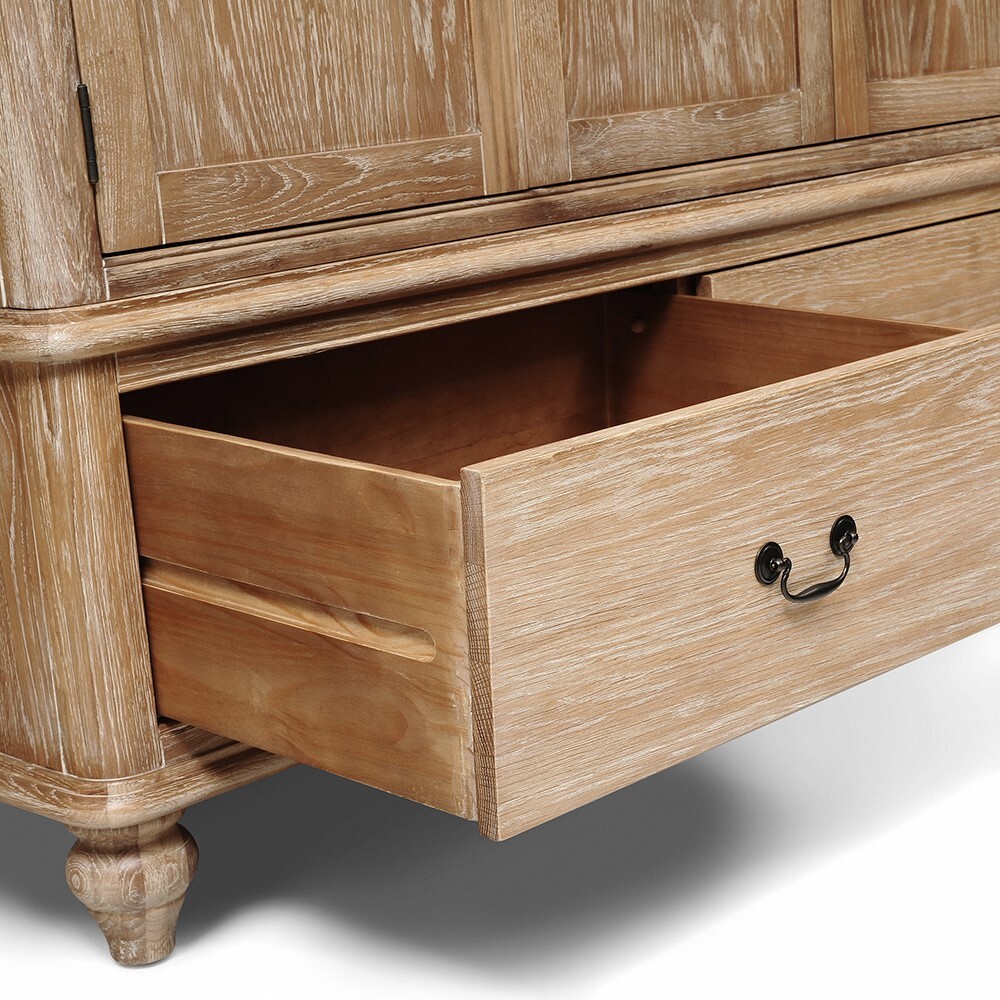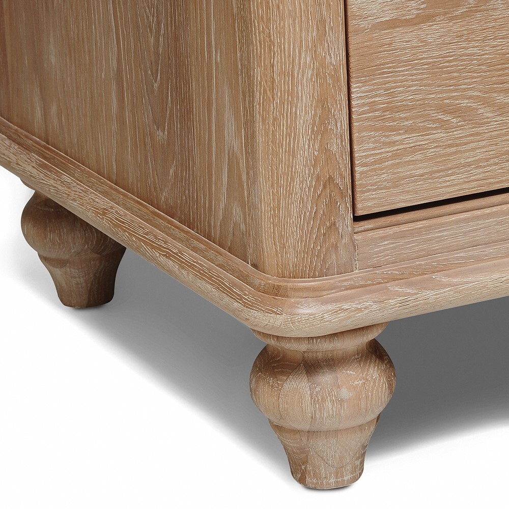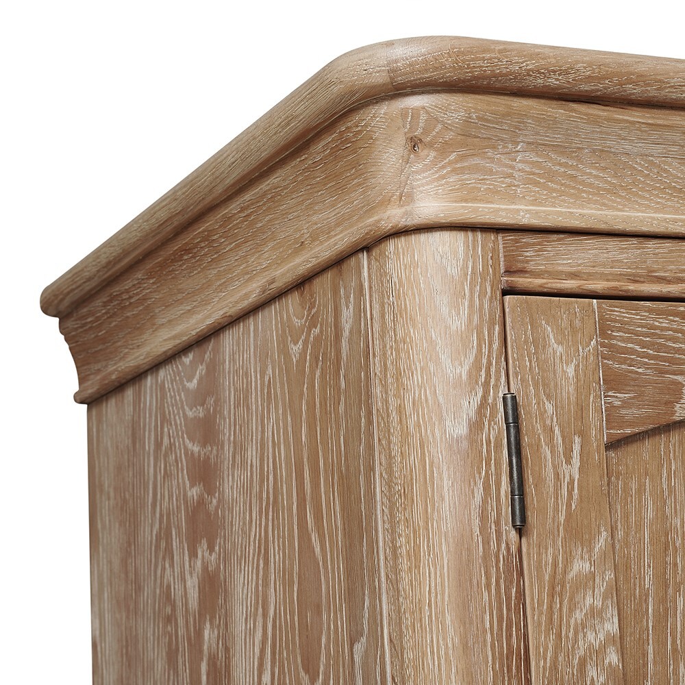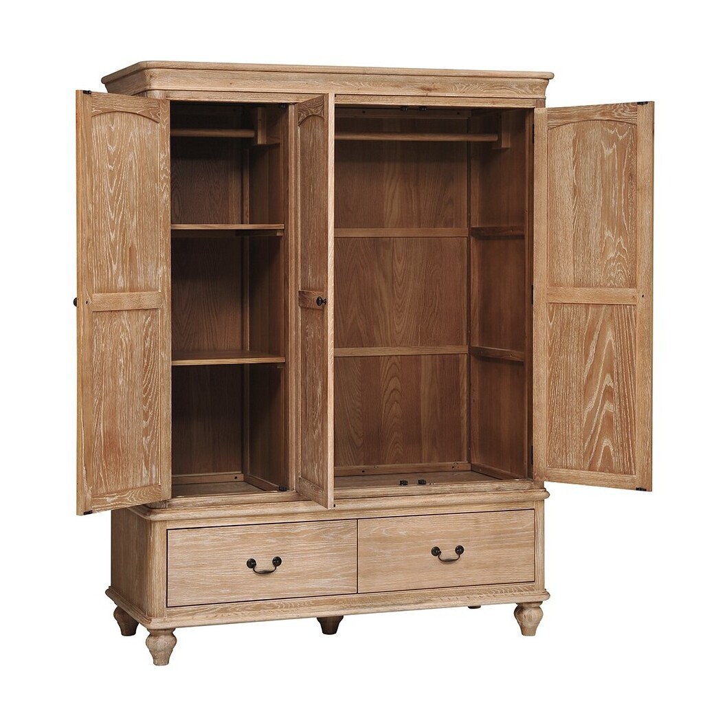 For a little more storage, our large Wickham Washed Oak Triple Wardrobe boasts ample space. With the option of having a double and single rail for hanging coats, jackets and blouses, the single rail can be switched out for shelving in which to keep jumpers, tops and jeans, should you need it. For more seasonal items, the two roomy bottom drawers are perfect for stowing away heavier clothing items or spare bedding and blankets too. A beautiful natural oak finish that exudes effortless rustic charm, the elegant turned feet and decorative handles add an altogether timeless and traditional feel.