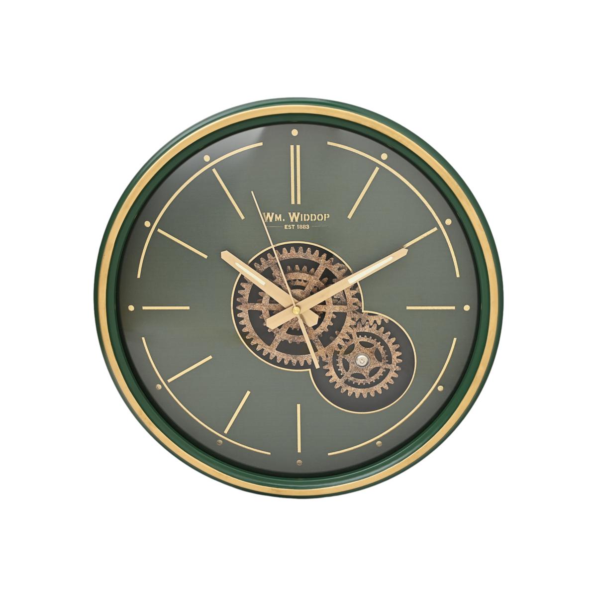 * Moving gear feature * Green and gold * Roman numerals * Steampunk/industrial styling This Double Moving Gear Wall Clock combines bold style with a touch of intrigue, thanks to its green outer casing and gold accents. The moving gears create a dynamic, eye-catching feature that draws attention in any room, and is perfect for adding a steampunk edge to your interior. Its unique design brings both function and visual interest, making it a statement piece for any space.