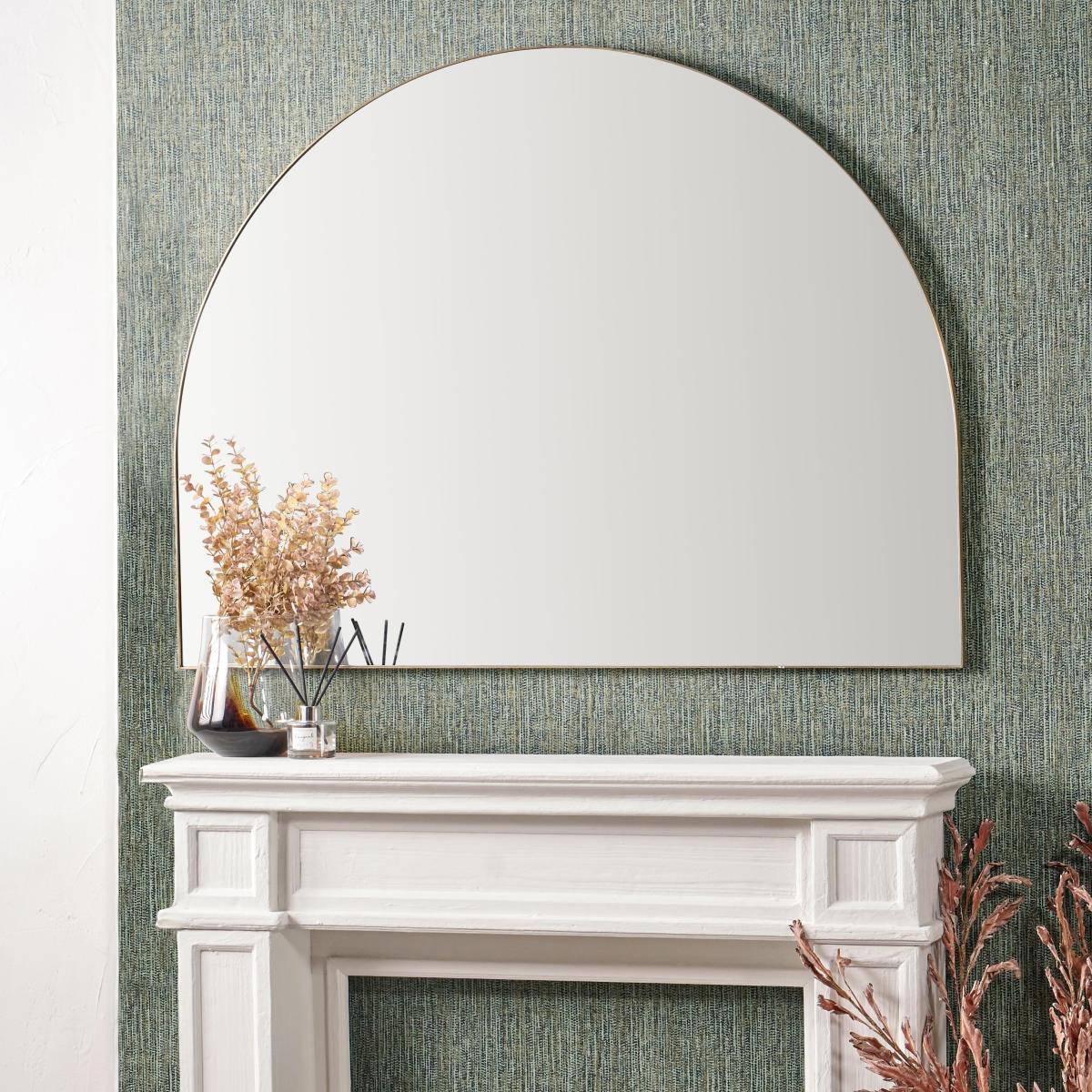 * Wide arched shape * Perfect over mantelpieces * Elegant and classic silhouette * Choice of frame colours This wide arched overmantel wall mirror adds a touch of timeless style to any living space. Its slim metal frame complements the graceful, classic silhouette, making it the perfect finishing touch above mantelpieces. Available in a choice of frame colours, you can easily find the ideal match for your decor. The spacious arch offers a clear reflection whilst maximising the sense of light and space in your room. Please note: Not suitable for bathroom use.
