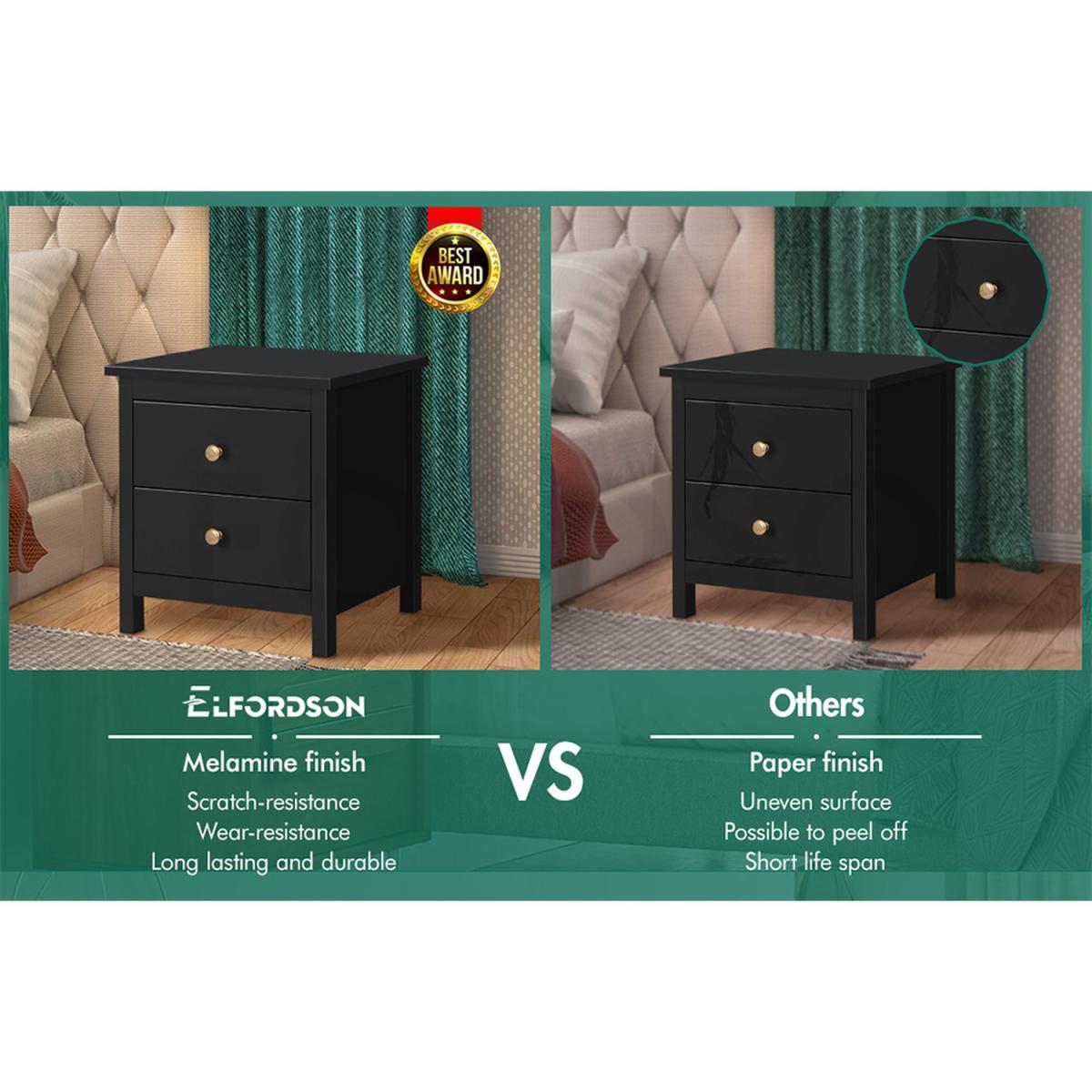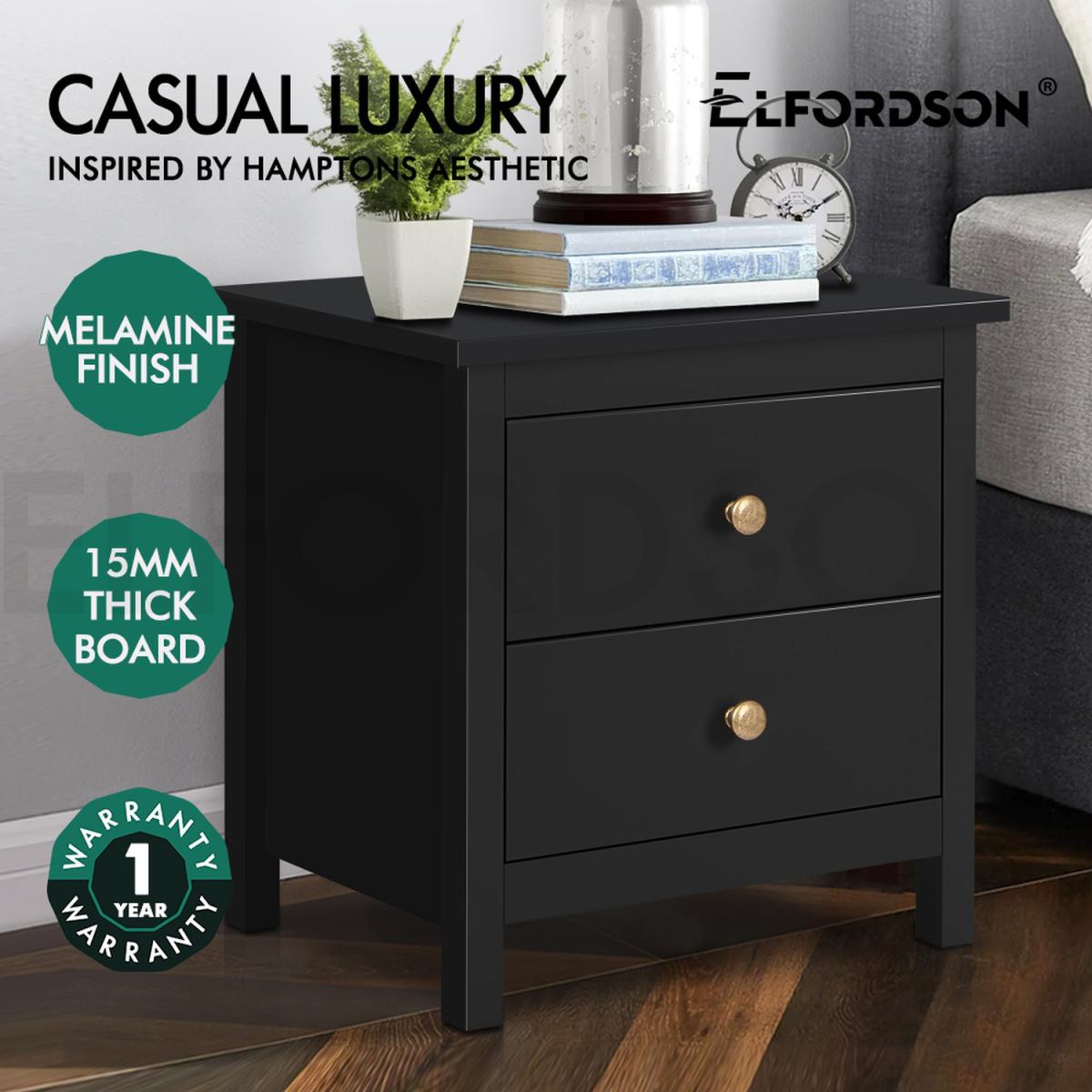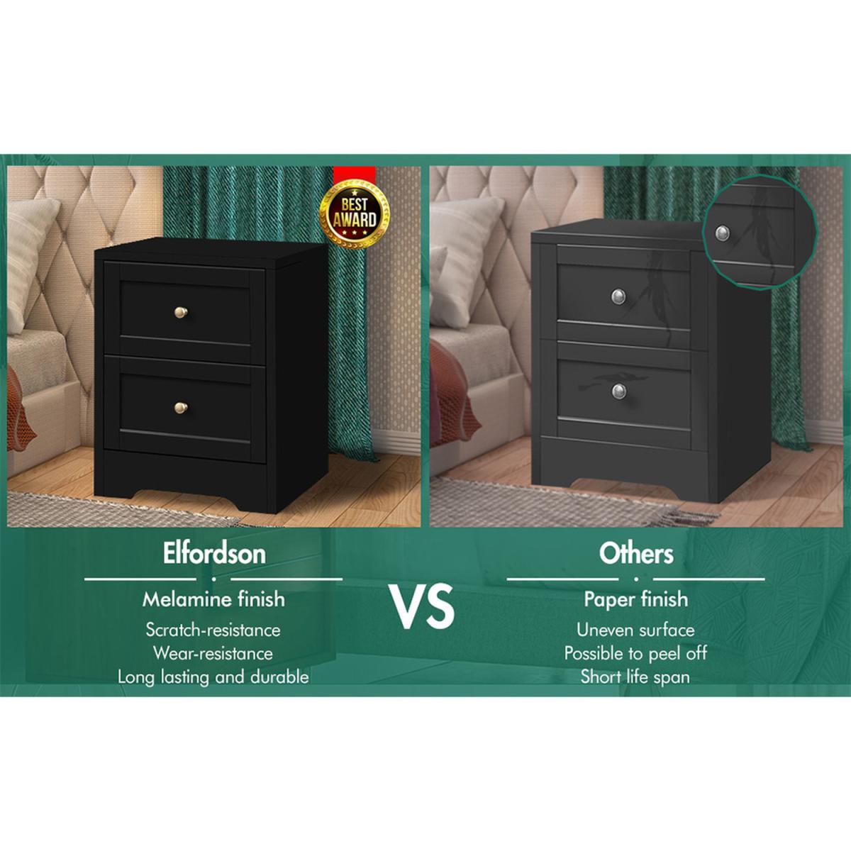Choosing the right bedside table is as important as choosing a comfortable bed for your restful bedroom. You will appreciate the convenience of having it close at hand instead of having to get out of your warm and comfortable bed. With our Elfordson bedside table, you just need to roll over and you can reach into the bedside surface or drawer. This bedside table can serve as a functional addition to the side of your bed. It provides a surface to place necessary items like a lamp, a laptop, a book, a glass of water, medicine or vitamin pills, or whatever else you may want to keep close by the bed. Not least, featuring 2 spacious drawers, it provides ample storage so that those items you store away in the drawers won't gather dust.