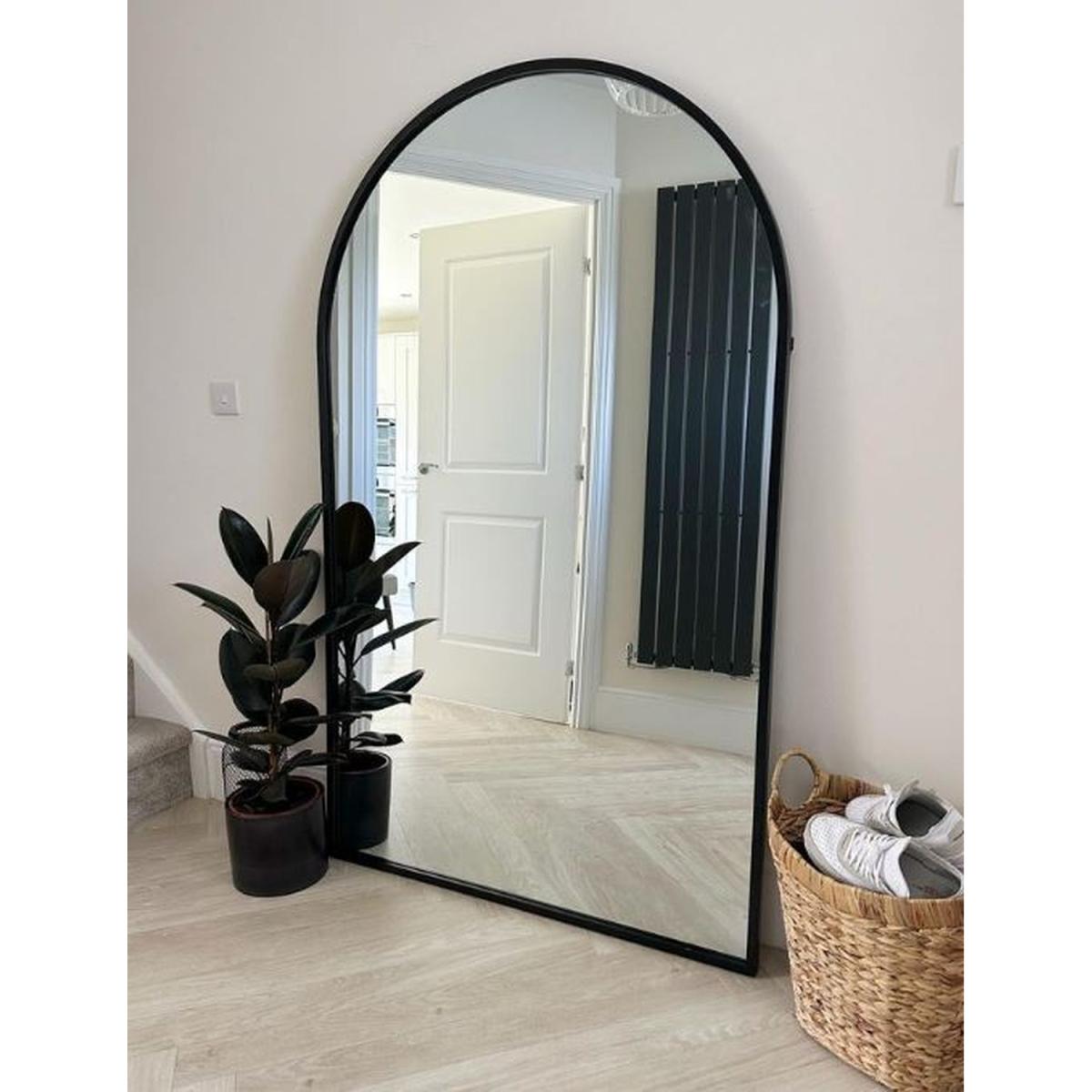 The Wide Metal Arch Mirror is a contemporary and sleek addition to any home. This impressive mirror has a sleek black frame that's easy to coordinate with your space in a beautiful arch design inspired by wide windows to make your home feel bigger. The lean-to mirror can be placed against your bedroom or living room wall for a modern finish, whilst being practical for doing make-up or checking your outfit. Ideal for any home, this is sure to make a statement.