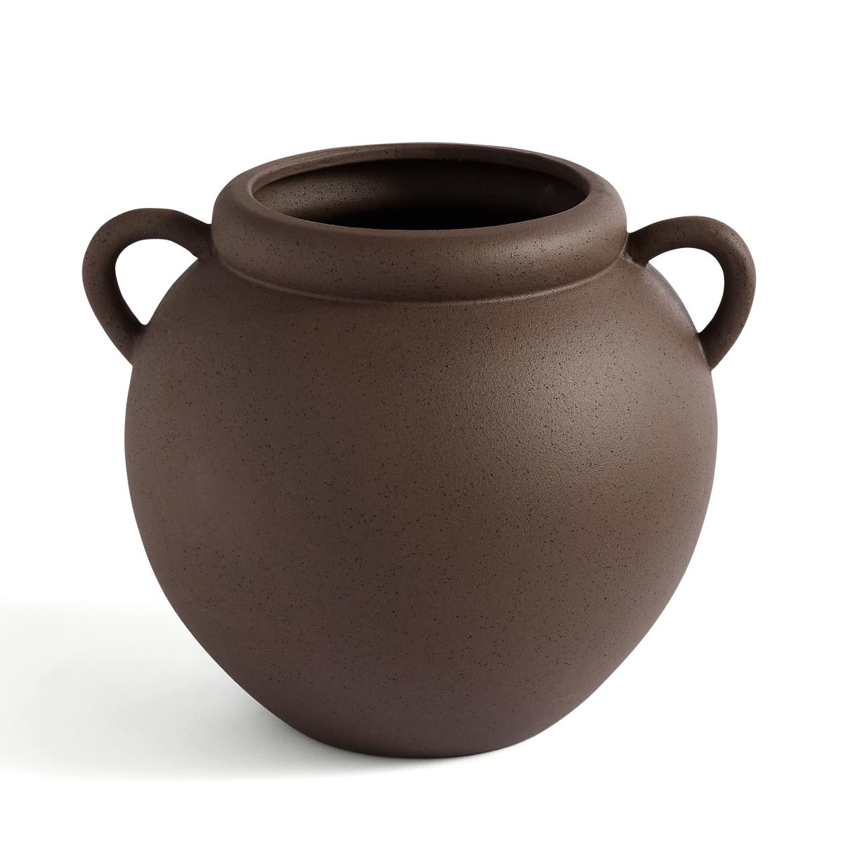 Wide Stone Vase with Handles Bitter Chocolate (Brown)