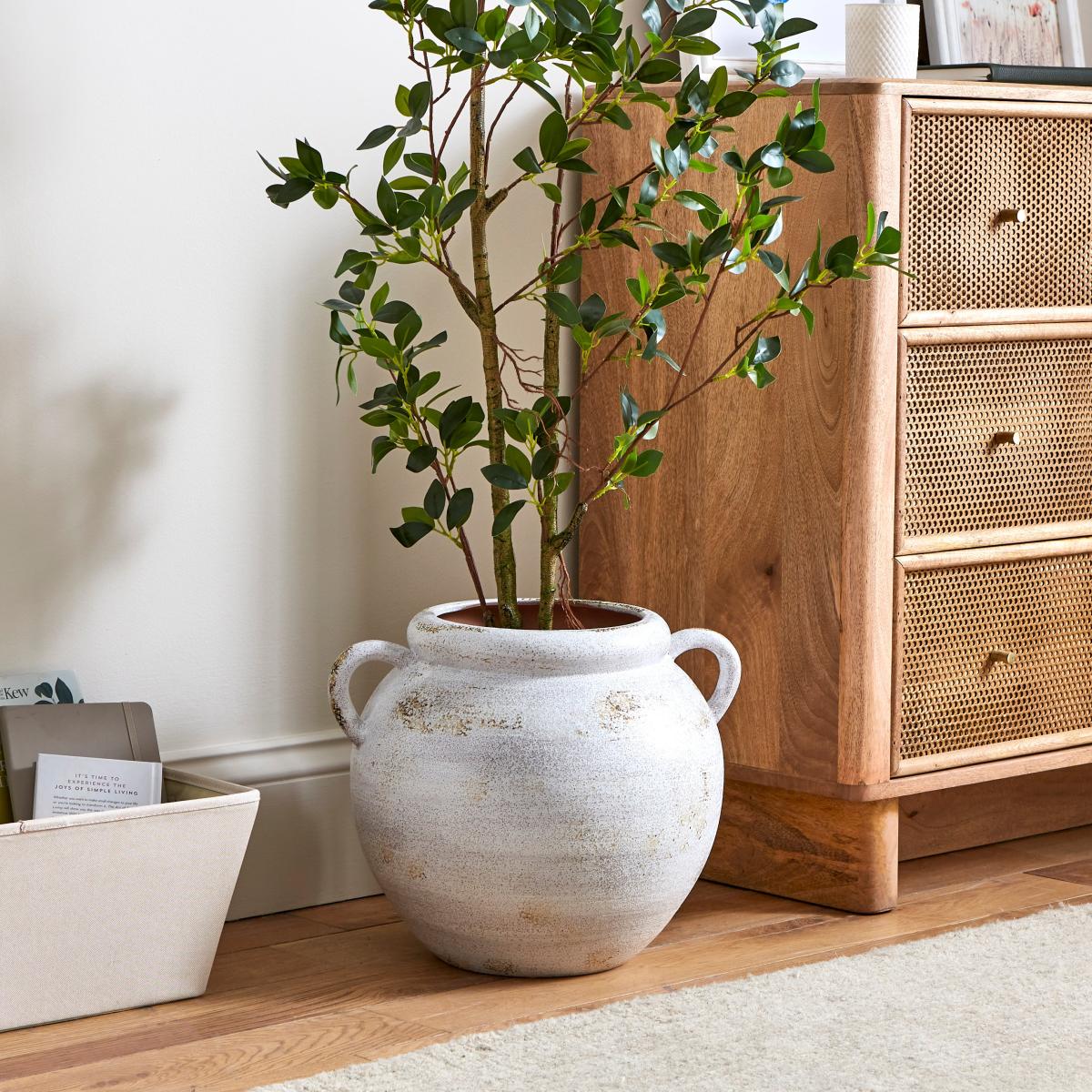 I love this vase because of its contemporary concrete effect paired with the practical handles, giving it an industrial yet versatile vibe. It works particularly well in minimal or Scandinavian interiors, where its muted tones complement neutral palettes and natural textures. For styling, try filling it with dried grasses or simple greenery for an understated look, or use it as a standalone piece on a sideboard or coffee table for added visual interest. Its robust design also makes it ideal for larger floral arrangements or striking branches, creating a focal point without overwhelming the space.
