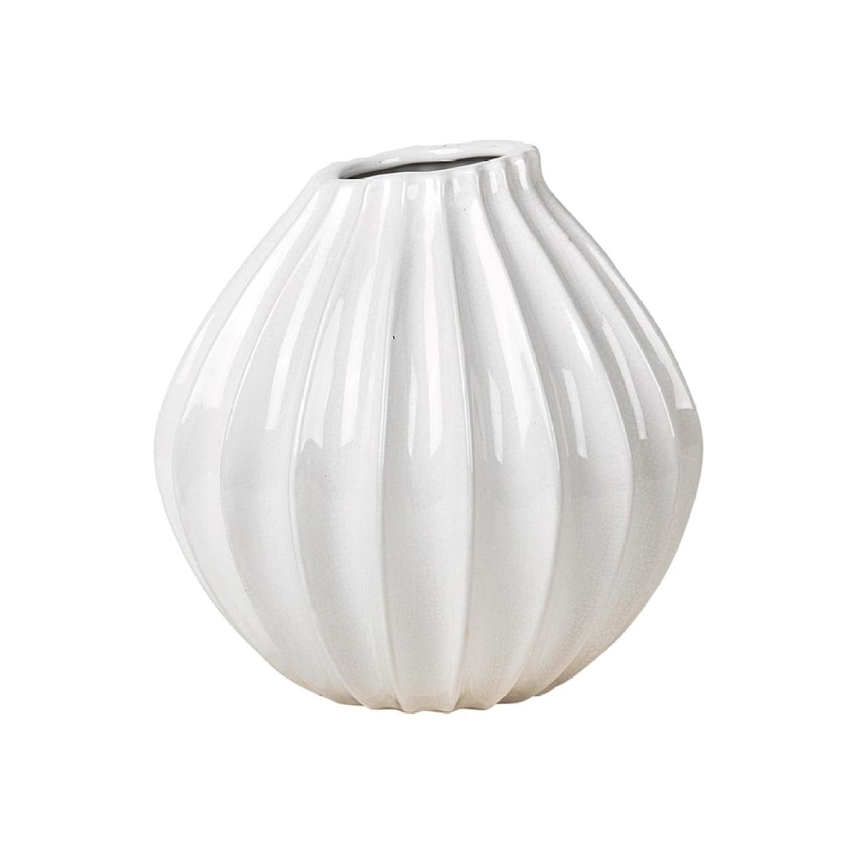 I love this vase for its clean, sculptural form and classic white finish-it’s a versatile piece that works well in a range of interiors, from minimalist to contemporary. Its medium size makes it perfect for displaying a handful of fresh or dried stems, which can add visual interest without overpowering a shelf or side table. For styling, consider pairing it with greenery or simple blooms to enhance its elegant silhouette, and place it where it can be a subtle focal point. It’s also great for mixing textures, such as pairing with natural wood or metal accents, to add depth to your space. This vase’s understated style makes it a practical yet stylish choice for everyday or special-occasion arrangements.