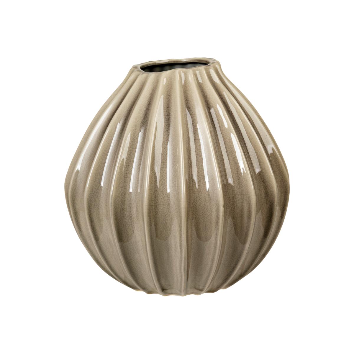 Create a beautiful still-life with the Wide vase by the Danish brand Broste Copenhagen. The vase is made of glazed ceramics with a simple ruffled structure in beige. Beautiful by itself or paired with simple twigs and flowers.