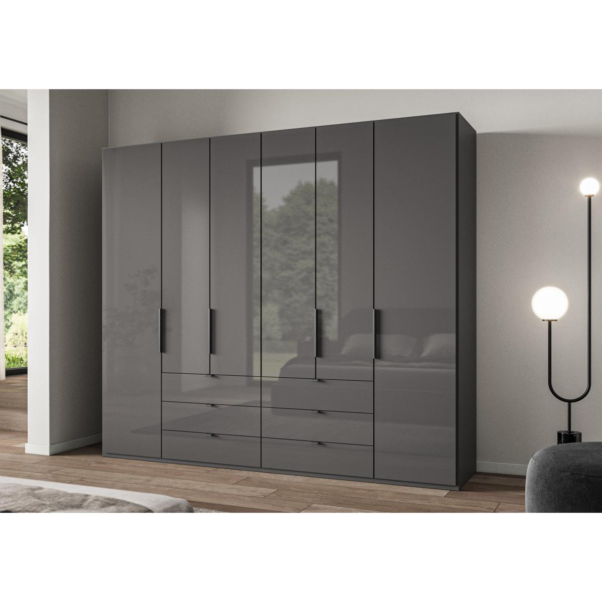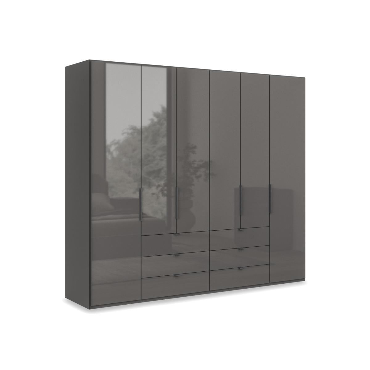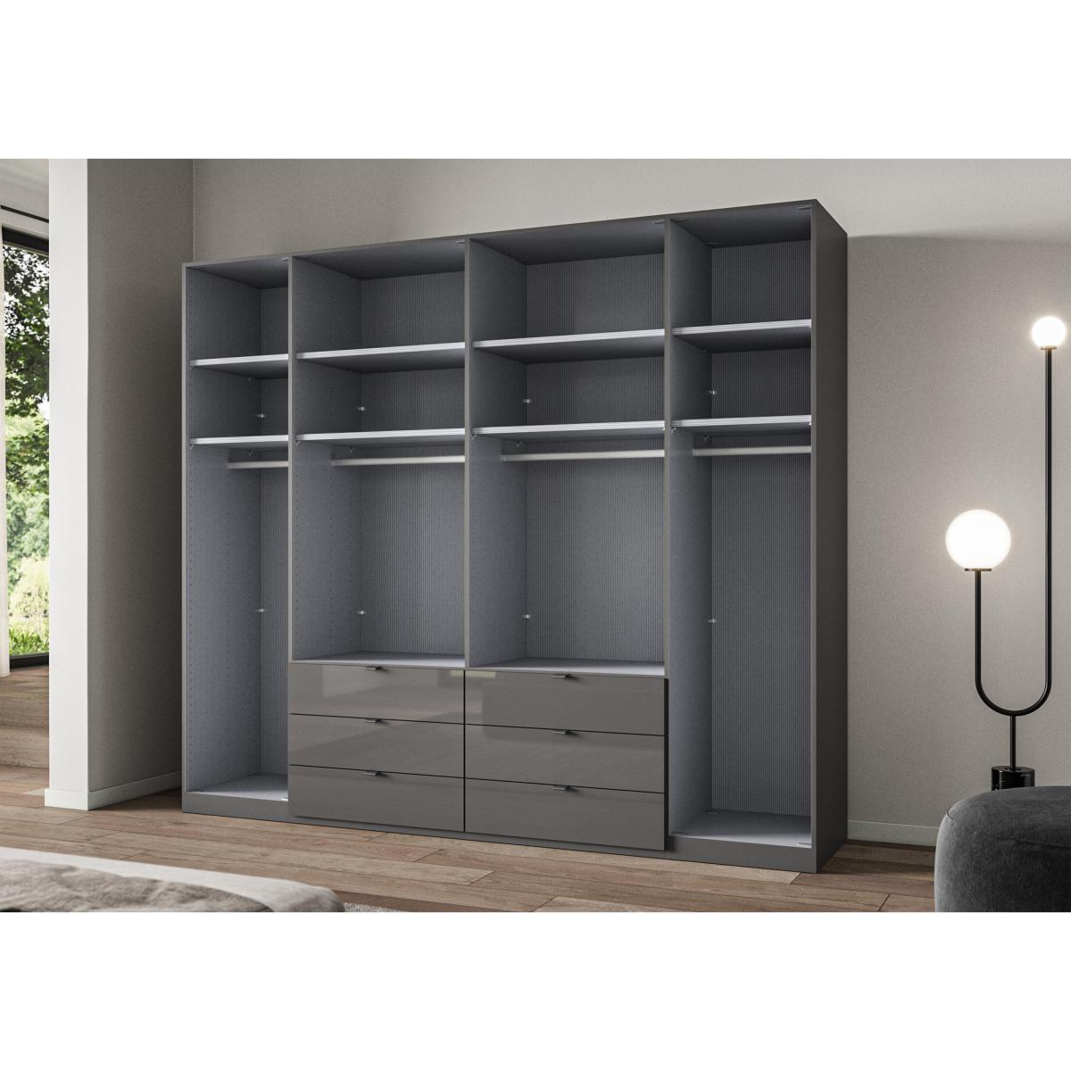 Sleek on the outside, spacious on the inside. Whichever way you look at it, the bedroom furniture in our Wiemann Amara range is absolutely stunning. With their glass doors, the range’s large-scale wardrobes have a finish that brings a high-end modern look to any bedroom. And with a choice of wardrobe configurations – hinged door, bifold door, combo with built-in drawers and even bifold combo – there’s a style that works for your space. Inside each wardrobe, you’ll find adjustable shelves and hanging rails, and you can even add extra fittings like drawer units, LED lights and more. Sustainably made in Germany, the Wiemann Amara range of glass wardrobes and chests of drawers is exclusive to Furniture Village. Simply stunning inside and out, this six-door combi wardrobe has elegant glass doors and drawers plus spacious and well-designed bedroom storage. In a choice of sophisticated colour finishes. Why you'll love it Enjoy sleek style and spacious storage with this stunning 6-door combi wardrobe. Grand in scale, this combi wardrobe suits larger bedrooms. Glass doors, glass drawers and wardrobe frame in a choice of colours. With 6 built-in drawers. Soft-closing doors and drawers have coordinating slate-coloured handles. There are 2 adjustable shelves and an adjustable hanging rail in each compartment. Customise this wardrobe with additional fixtures and fittings, available separately. This wardrobe is sustainably made in Germany by Wiemann. A Furniture Village exclusive design. This 250 cm 6-door combi wardrobe with glass doors and drawers is part of our Wiemann Amara range. What you need to know Delivered, assembled and installed for you free of charge. Standard internal storage comprises 2 adjustable shelves and 1 adjustable hanging rail per compartment. Compatible interior and exterior fittings are available for this wardrobe at an additional cost. Dust with a lint-free cloth. Do not use silicone-based furniture polishes. Our exclusive Wiemann Amara range includes bifold and hinged wardrobes and chests of drawers. WARNING! Item code: AMRA2586LAVA-001