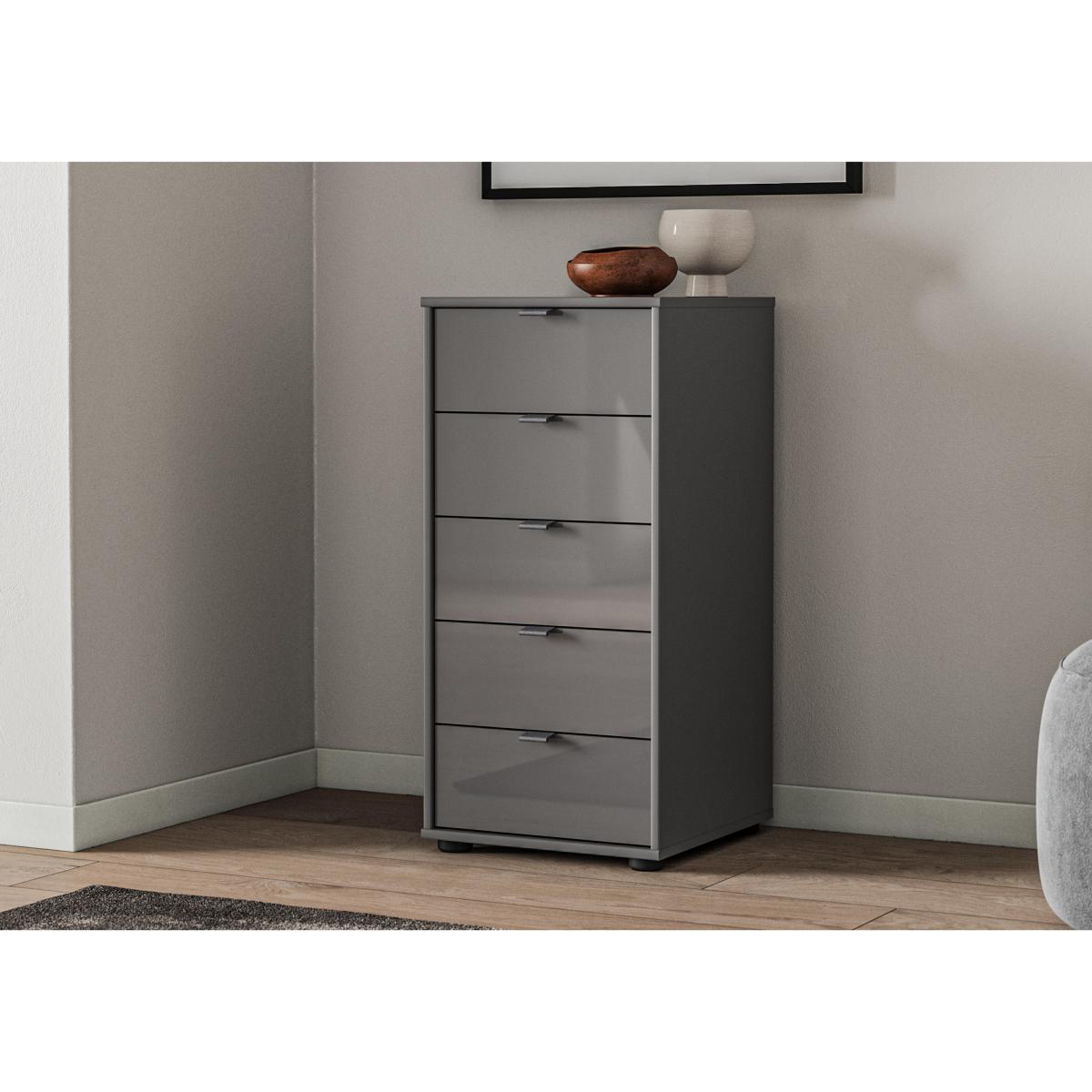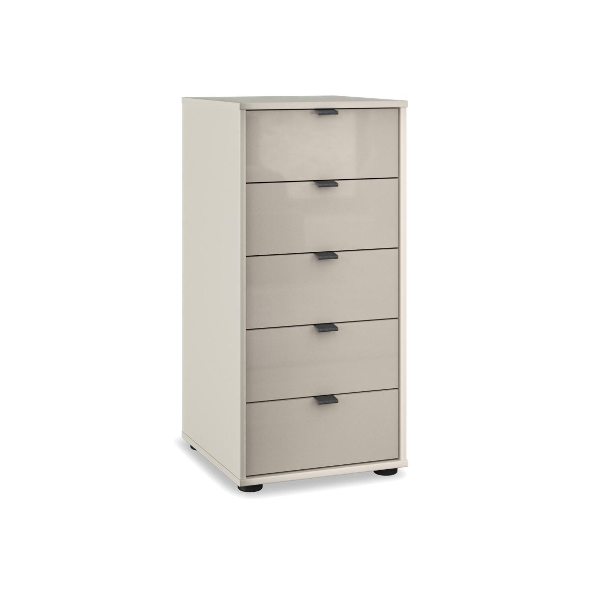 Sleek on the outside, spacious on the inside. Whichever way you look at it, the bedroom furniture in our Wiemann Amara range is absolutely stunning. With their glass doors, the range’s large-scale wardrobes have a finish that brings a high-end modern look to any bedroom. And with a choice of wardrobe configurations – hinged door, bifold door, combo with built-in drawers and even bifold combo – there’s a style that works for your space. Inside each wardrobe, you’ll find adjustable shelves and hanging rails, and you can even add extra fittings like drawer units, LED lights and more. Sustainably made in Germany, the Wiemann Amara range of glass wardrobes and chests of drawers is exclusive to Furniture Village. Simply stunning, this five-drawer chest of drawers has elegant and eye-catching glass drawer fronts. In a choice of sophisticated colour finishes. Why you'll love it Enjoy sleek style and spacious storage with this stunning 5-drawer chest. Tall and narrow, it’s perfect for an alcove. Eye-catching glass drawers and frame in a choice of colours. Soft-closing drawers have coordinating slate-coloured handles. This chest of drawers is sustainably made in Germany by Wiemann. A Furniture Village exclusive design. This 5-drawer glass chest is part of our Wiemann Amara range. What you need to know Delivered, assembled and installed for you free of charge. Dust with a lint-free cloth. Do not use silicone-based furniture polishes. Our exclusive Wiemann Amara range includes hinged, bifold and combi wardrobes. WARNING! Item code: AMRA3280CHAM-001