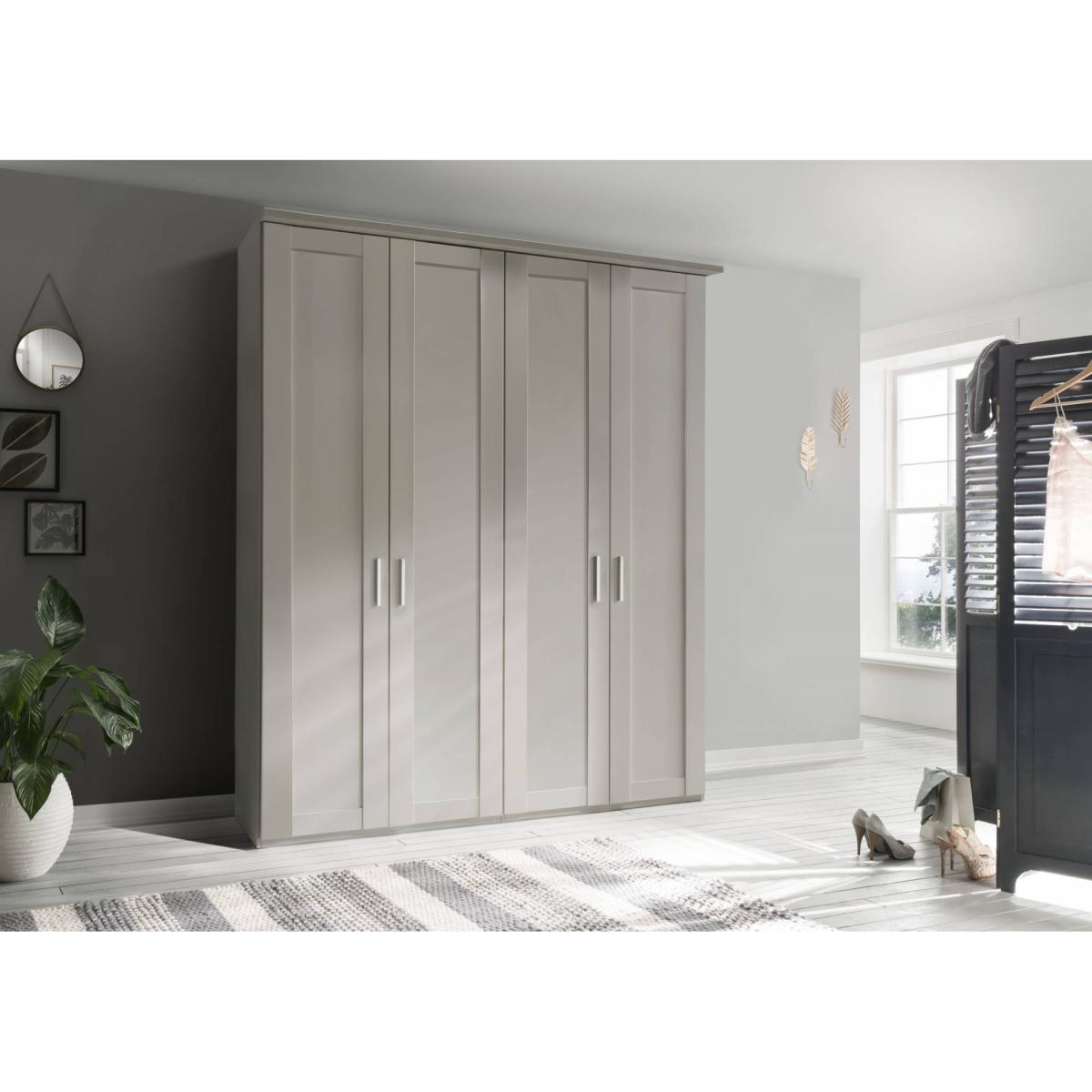 There is a hint of the country cottage to the styling of Cambridge, which we're certain will have wide appeal to those looking for something slightly more traditional. All wardrobes include the cornice for the perfect finishing touch. The hinged door robe is available in a choice of colours, with full length mirror door options in sizes ranging from two to six doors. Add some complementary chests of drawers, attach some clip-on lighting and hey presto, the perfect storage solution for your bedroom!The interior options of the wardrobes include two adjustable shelves and a clothes rail. This product is proudly made in Germany and free home delivery and installation is included in the pricing. Dimensions: W 200 x H 220 x D 58cm 4 Plain Doors Includes 2 adjustable shelves and a clothes rail in each compartment Chrome Finish Handles Made in Germany Free home delivery and installation is included in the pricing Please note, the image shows the Wiemann Cambridge 4 Door Wardrobe in the Champagne 023 finish. All screens vary in colour reproduction and whilst every effort has been made to display the colour as accurately as possible it is for guidance only.